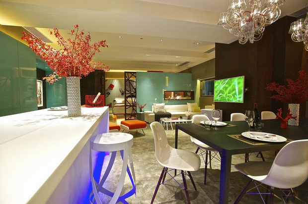 這一公寓由ACID+ [Anji Connell Interior Design +] 設(shè)計(jì),位于香港。設(shè)計(jì)注重空間、光線與視覺的每個(gè)細(xì)節(jié)與施工。簡(jiǎn)化了部分材料,注重色彩搭配,玻璃、混凝土、水泥板和風(fēng)化鐵增強(qiáng)了空間感,體現(xiàn)了工業(yè)精神。墻壁盡可能保持一直開放,因?yàn)闆]有高至天花板,推拉門也是鏤空的花紋,維持了空氣的流通性,也減少了空調(diào)的浪費(fèi)和成本。也同時(shí)兼顧了私密性,堪稱完美。
