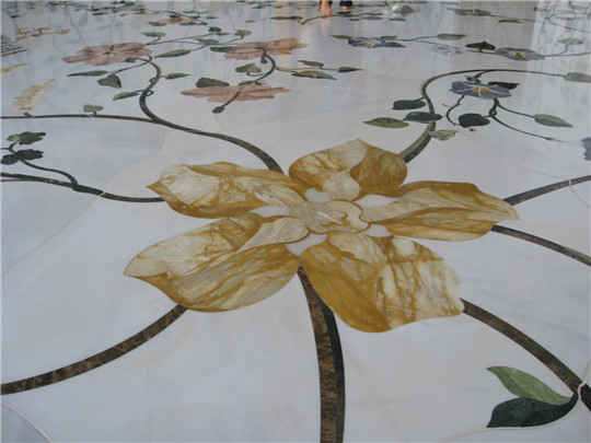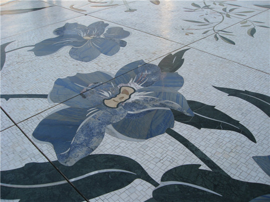 石材拼花在現(xiàn)代建筑中被廣泛應(yīng)用于地面、墻面、臺面等裝飾,以其石材的天然美(顏色、紋理,材質(zhì))加上人們的藝術(shù)構(gòu)想,拼出一幅幅精美的圖案。