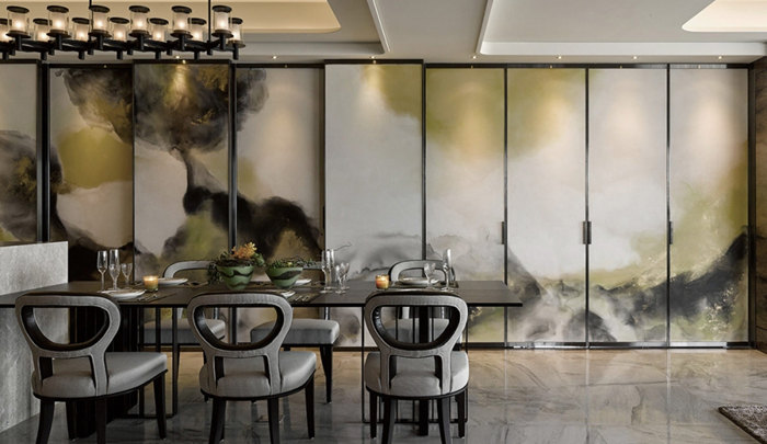 實際的城市生活里,山光云影的自然景況逐漸在建筑交錯、堆棧中淡化。設(shè)計師在設(shè)計上深究建筑的特色,從L行的開窗面,引申開闊風(fēng)景,牽動感官感知的思維模式,運用連續(xù)性展開的暈染畫作,模擬大山云霧的虛無縹渺,落實視角的想象,改變檢視藝術(shù)的視角角度,實踐內(nèi)心期望的生活方式。