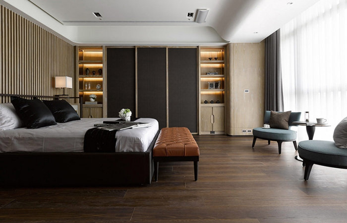 設(shè)計上,為經(jīng)常往返美國、上海、新加坡的屋主,仿制頂級酒店的精品規(guī)格,透過復(fù)合室媒材及細致工法,引申獨到的卓絕品味。天花以弧線收邊,給予圓融的涵養(yǎng),響應(yīng)建筑外觀。陳設(shè)方面,搭配自然媒材,如,花藝、植栽,豐富休憩空間的層次意趣。