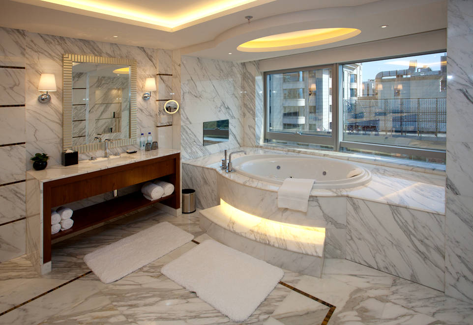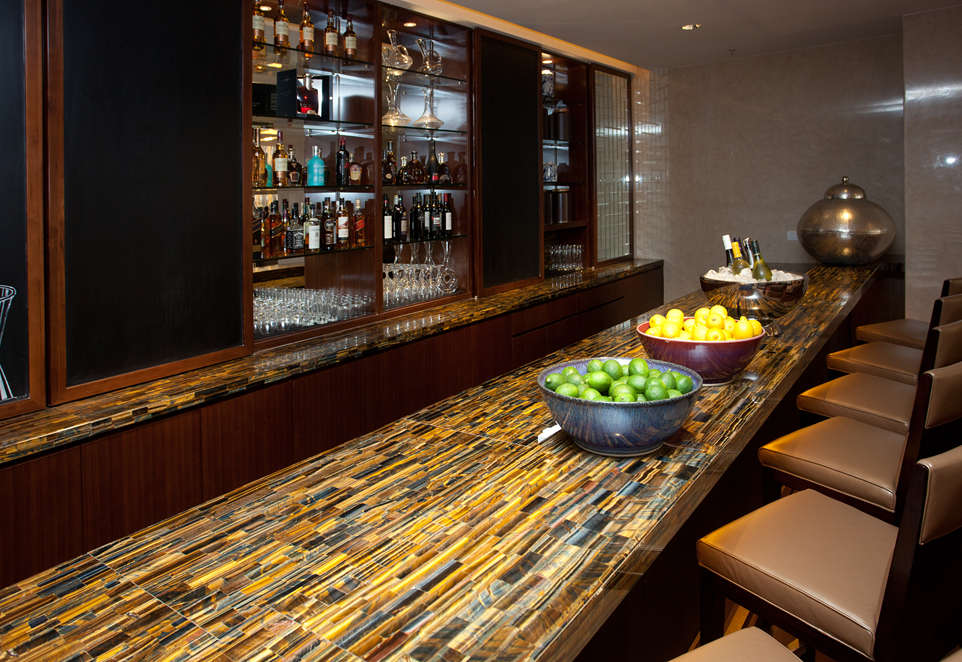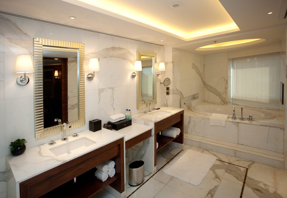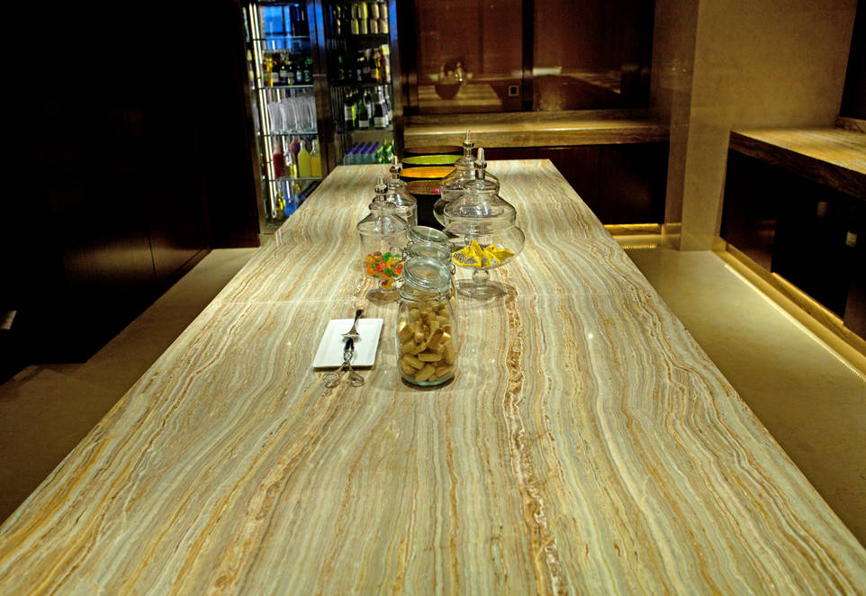 如同多數(shù)高端酒店一樣,北京珠三角JW萬豪酒店也使用了大量天然石材作為主要裝飾材料之一。 走進(jìn)酒店大堂就會(huì)發(fā)現(xiàn)石材所營(yíng)造的簡(jiǎn)約明亮的格調(diào),全魚肚白鋪貼的地面花紋錯(cuò)落有致,深啡網(wǎng)的前臺(tái)與墻面裝飾的延伸到天花板的網(wǎng)狀壁燈相應(yīng),帝王米黃鋪貼的墻面光潔如鏡。 房間使用了大量的天然大理石鋪貼,特別是衛(wèi)浴空間的大面積魚肚白應(yīng)用,帶來潔凈、清爽感受,是目前非常流行的應(yīng)用方式。 酒店最頂層還設(shè)有令人嘆為觀止的玻璃屋頂泳池,以藍(lán)色馬賽克鋪底,周圍使用光面和拉絲面的羅馬洞石鋪貼,非常的簡(jiǎn)約大氣,在陽光下明亮清爽,讓賓客在此能夠放松身心,享受一份恬靜體驗(yàn)。 萬豪軒為簡(jiǎn)約現(xiàn)代裝飾風(fēng)格,用質(zhì)樸的深色實(shí)木和檀香木紋、帝王米黃等天然石材搭配出較為深邃的色調(diào),以中國(guó)傳統(tǒng)裝飾元素為特色。簡(jiǎn)約明快的石材裝飾設(shè)計(jì),為酒吧增添了另一種奢華氣質(zhì)。 全日制餐廳JW Kitchen設(shè)有開放式廚房,早中晚三餐供應(yīng)世界各地菜肴。淺色的魚肚白和帝王米黃將深色實(shí)木鋪貼的空間分離出來,形成一個(gè)“白色的小島”,而美味就從島中不斷流出。 |