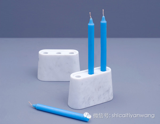 這些家居產(chǎn)品和當(dāng)?shù)匦∑髽I(yè)合作開發(fā)生產(chǎn),其中的“Plug”用著名的卡拉拉大理石做成,結(jié)構(gòu)簡單,大理石臺柱上面有三個孔,放在地上可以當(dāng)傘架用,放在桌子上則可用作燭臺。