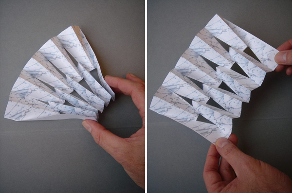 設(shè)計(jì)師以紙做的模型推敲“折紙”的形狀。
