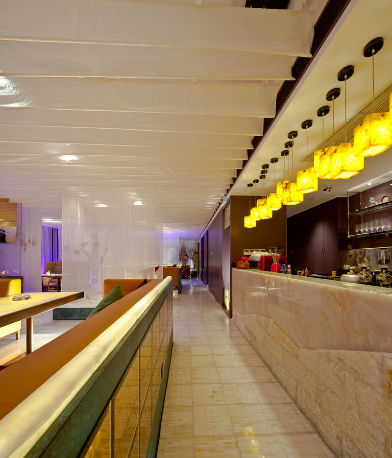 該作品充分滿足了不同時(shí)間段的客人享用咖啡、茶、紅酒等產(chǎn)品的氛圍需求,光與影的完美融合,優(yōu)雅與嫵媚的交匯,簡潔明了而又富含禪意的韻味,給人與眾不同的消費(fèi)體驗(yàn)。