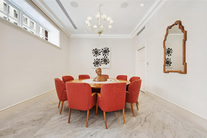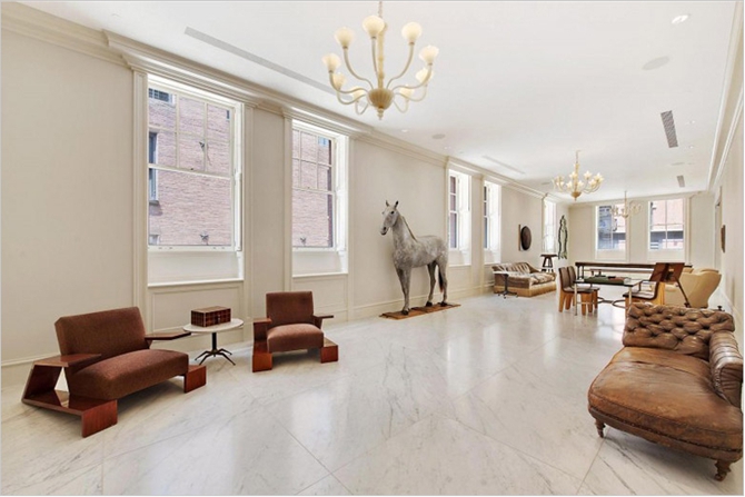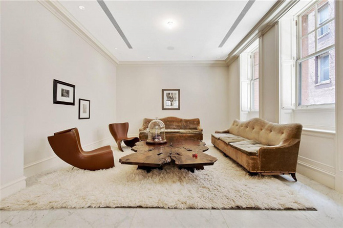 這棟豪華的公寓位于紐約翠貝卡地區(qū),面積為9000平方英尺(約836平方米),豪宅包括六間臥室,五間全浴和一間半浴以及一個(gè)長(zhǎng)45英尺(約13.7米)的小型健身泳池。據(jù)悉,該幢公寓于2009年以2450萬(wàn)美元的價(jià)格掛牌,至今仍然沒(méi)有售出,目前售價(jià)在1750萬(wàn)美元左右,公寓內(nèi)幾乎每一個(gè)室內(nèi)空間都使用了定制大理巖進(jìn)行裝潢修飾。
