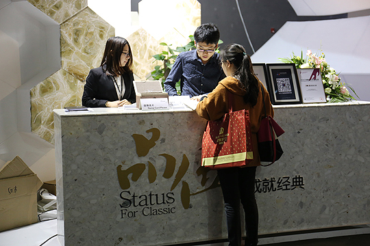 展廳前臺(tái)也是人造石(卡拉卡卡)打造的,其大小不一的石塊形成的紋理也是非常有趣的,現(xiàn)場(chǎng)不少朋友都好奇的前去敲一敲。