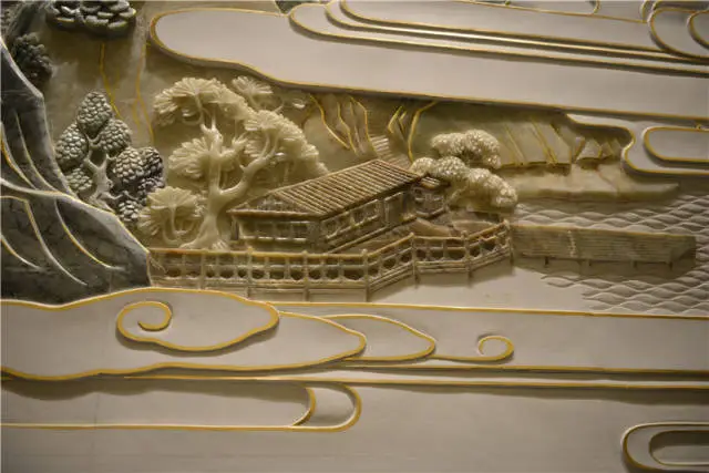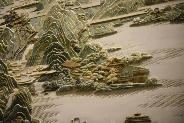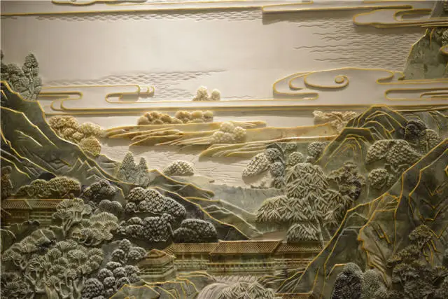 《東湖盛景圖》彩玉浮雕壁畫高10米、長60米、總面積達600平米,以白玉、天然玉石、金絲等多種世界頂級寶石雕刻而成,是迄今為止全球最大的彩玉浮雕作品。