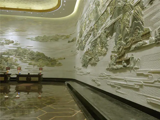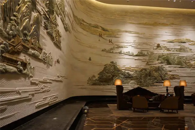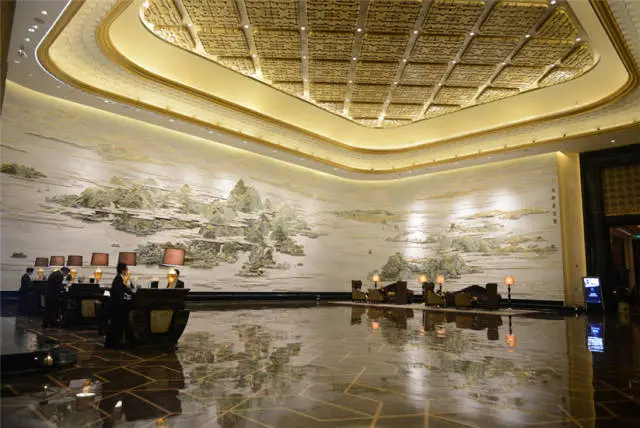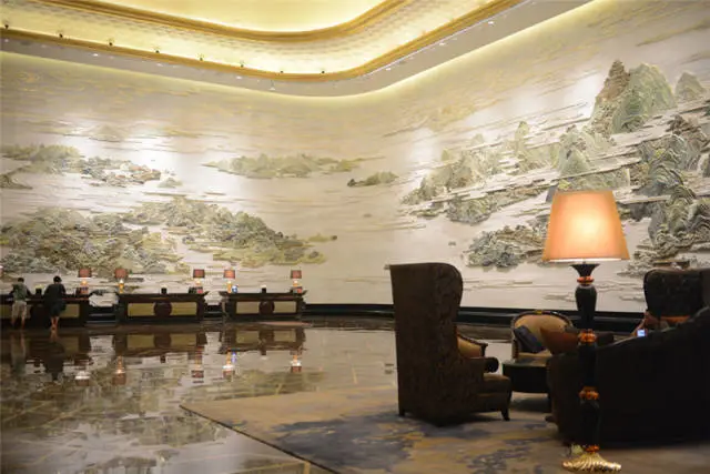 武漢萬達瑞華酒店是萬達第一家七星級的自主品牌酒店,其中最具震撼力的當屬酒店大堂的大型彩玉浮雕壁畫---《東湖盛景圖》,該圖榮獲“大世界基尼斯之最”之中國最大玉璧畫榮譽。整體提升了酒店的文化藝術(shù)品質(zhì),堪稱博物館酒店。