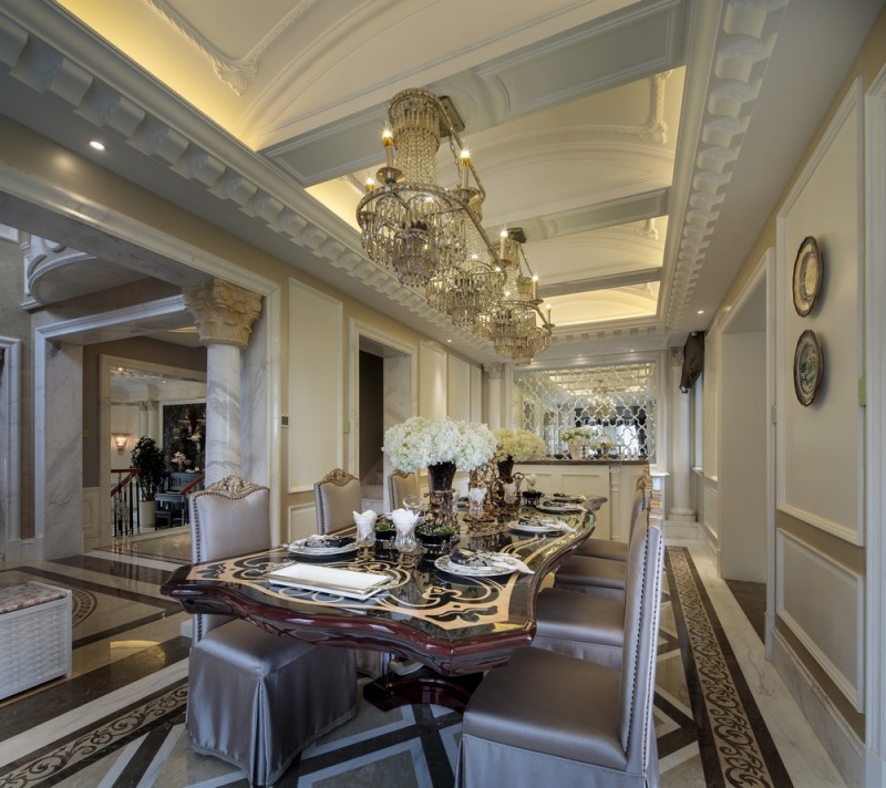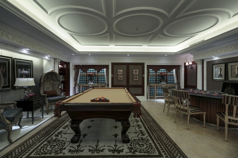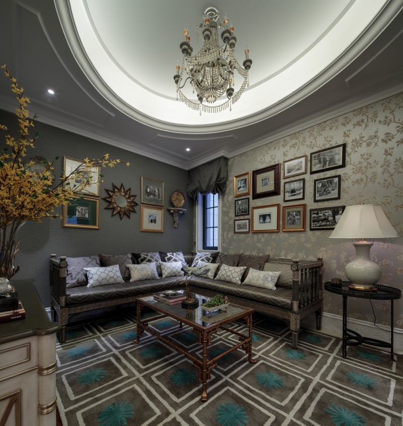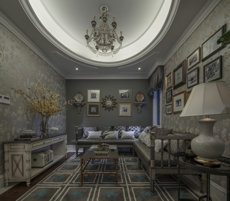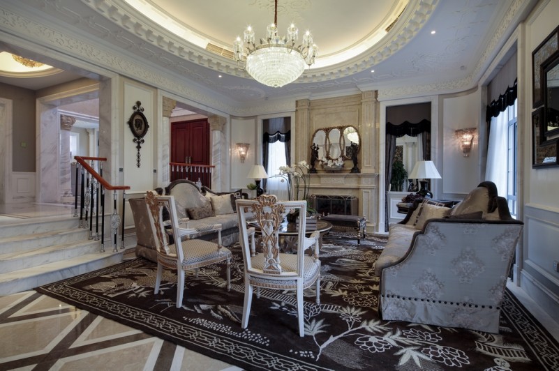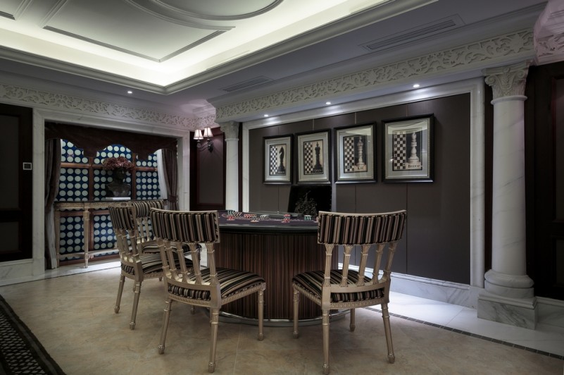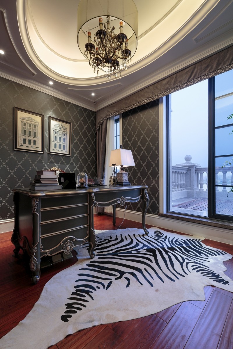 本案名為巴洛克戀曲,獨(dú)特的色彩切分是本案鮮明的特征,亦如探戈舞曲般節(jié)奏明快,熱烈狂放且變化無(wú)窮。法式風(fēng)格的基調(diào)配以墻體上浮雕感突出的石膏線,黑白