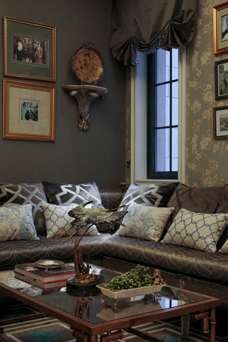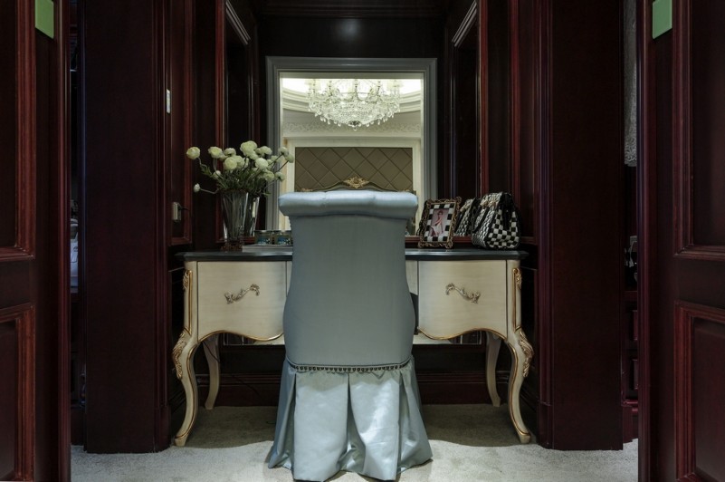 賽克拼花墻面配上黑胡桃木框鏡子,猶如歌劇中詠嘆調(diào)般的盡顯華麗。在這里,感受色彩的切分,聆聽樂(lè)章的斷奏,體會(huì)感情中的香艷甜美、神秘莫測(cè)又或是嫉恨妒