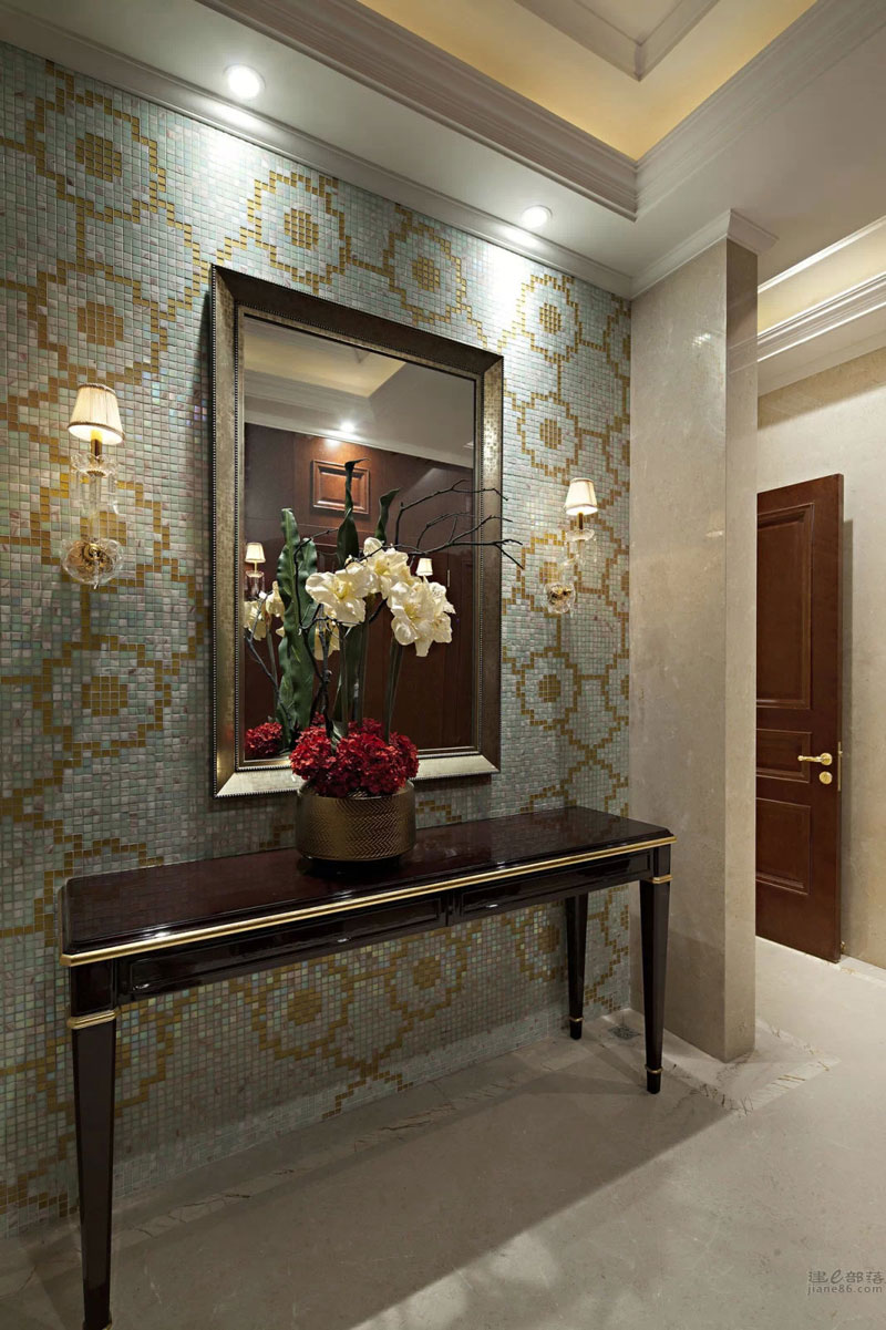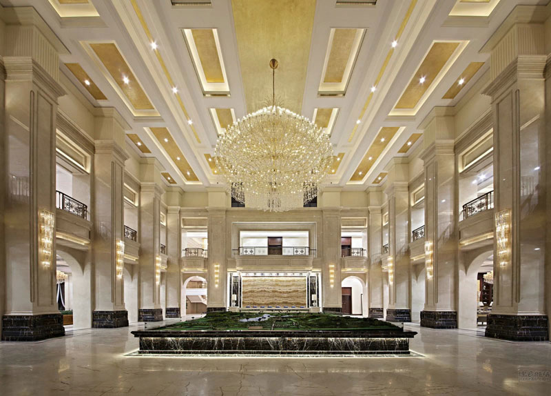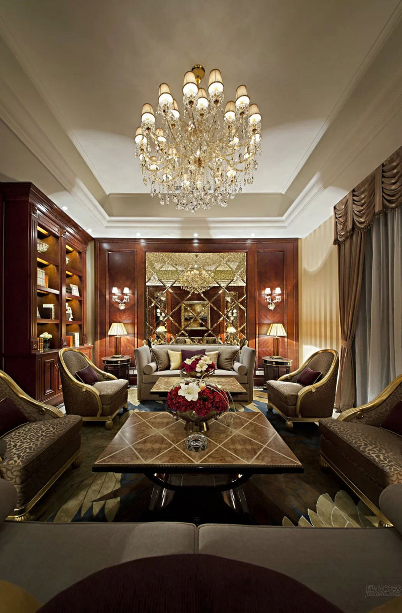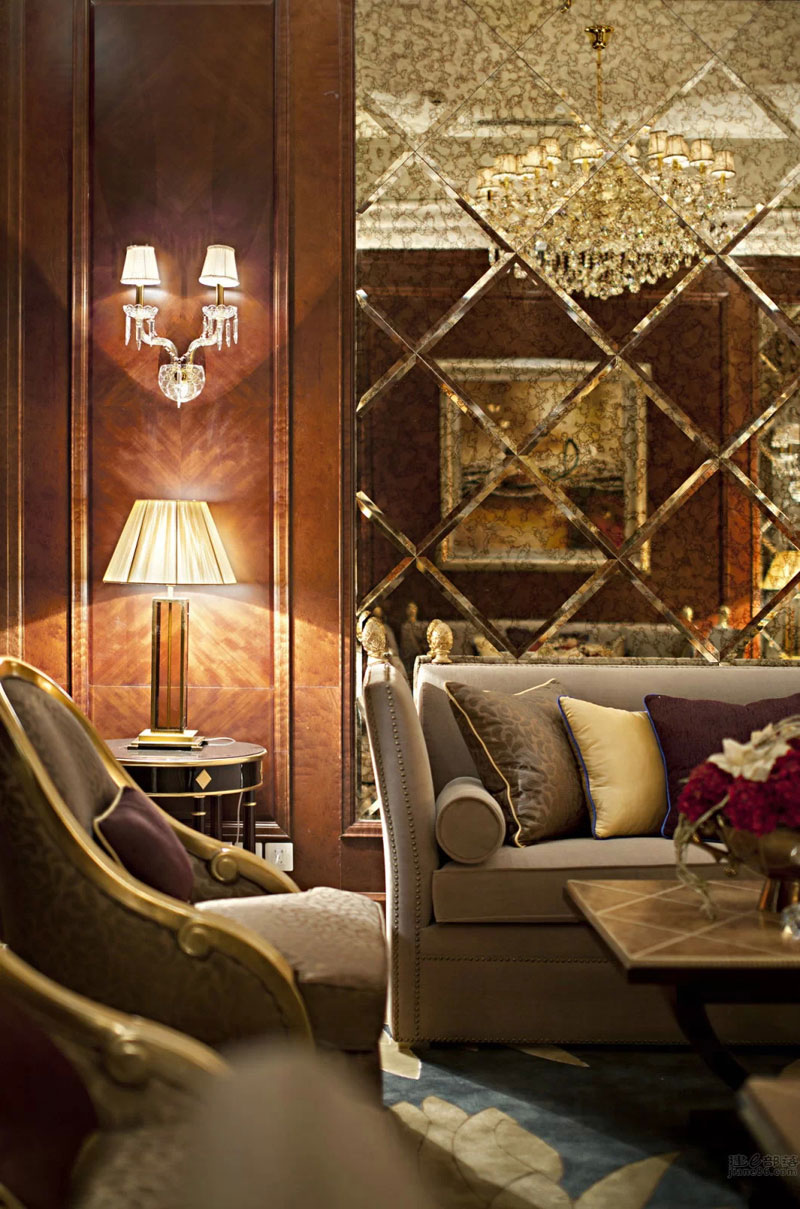 本案設(shè)計(jì)與外形建筑相呼應(yīng),柱廊、拱門(mén)、璀璨的水晶……法式浪漫的聯(lián)盟體。“樹(shù)影、鏡湖”是這個(gè)公共空間我們要表達(dá)的關(guān)鍵詞;眼睛平視的花藝裝置意喻為樹(shù);雕塑臺(tái)材質(zhì)為鈦金鏡面,意喻為湖;大小水珠灑落在湖面上,晶瑩剔透;灑落一地的金黃色葉子慵懶的飄在湖水與倒影中;顏色各一的抱枕活躍在超長(zhǎng)的沙發(fā)上;大人小孩盡情玩耍、嬉戲……景由心生,讓我們帶上家去旅行吧!