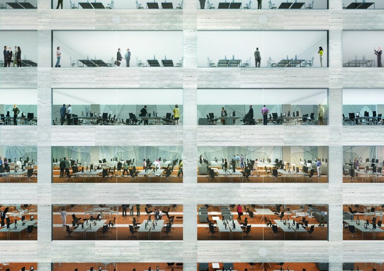 遮陽問題解決后,大樓的半透明外觀設(shè)計具有X光效果,將結(jié)構(gòu)獨(dú)一無二的組件暴露在周圍環(huán)境中。