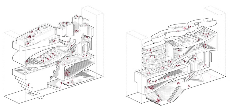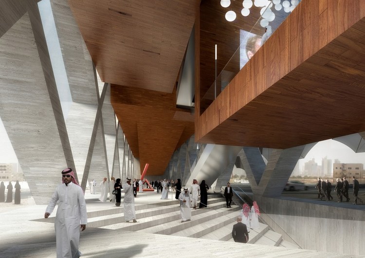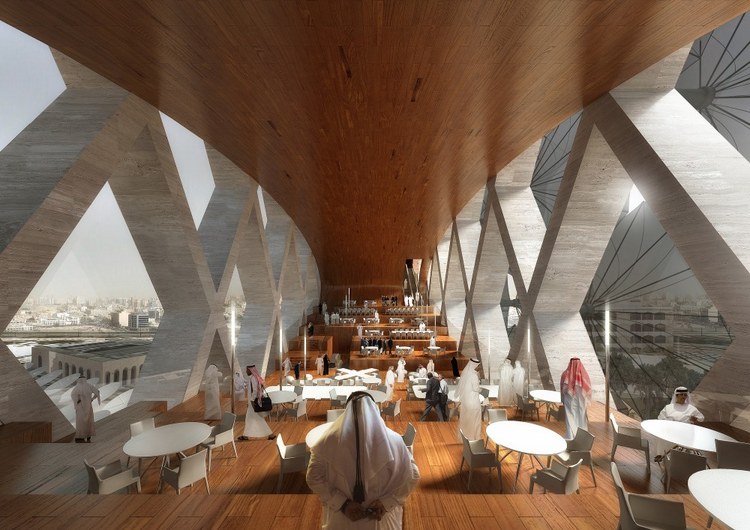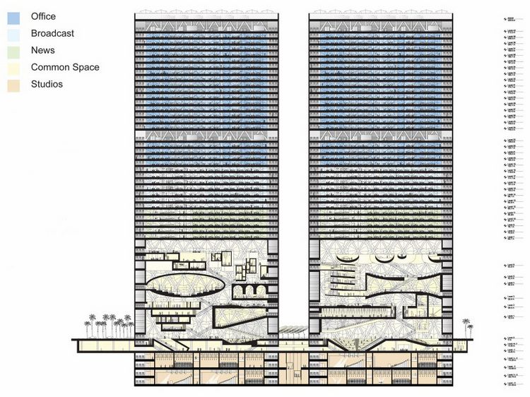 REX受委托以傳統(tǒng)的阿拉伯肖像為參考設(shè)計一個聯(lián)合總部大樓。最后,形成了兩座極細(xì)的石材覆蓋的大樓,一排可伸縮的遮陽蓬的形狀設(shè)計受到阿拉伯馬什拉比亞圖案的啟發(fā),為建筑提供遮蔽,保護(hù)它不受中東“無情的太陽”的破壞。