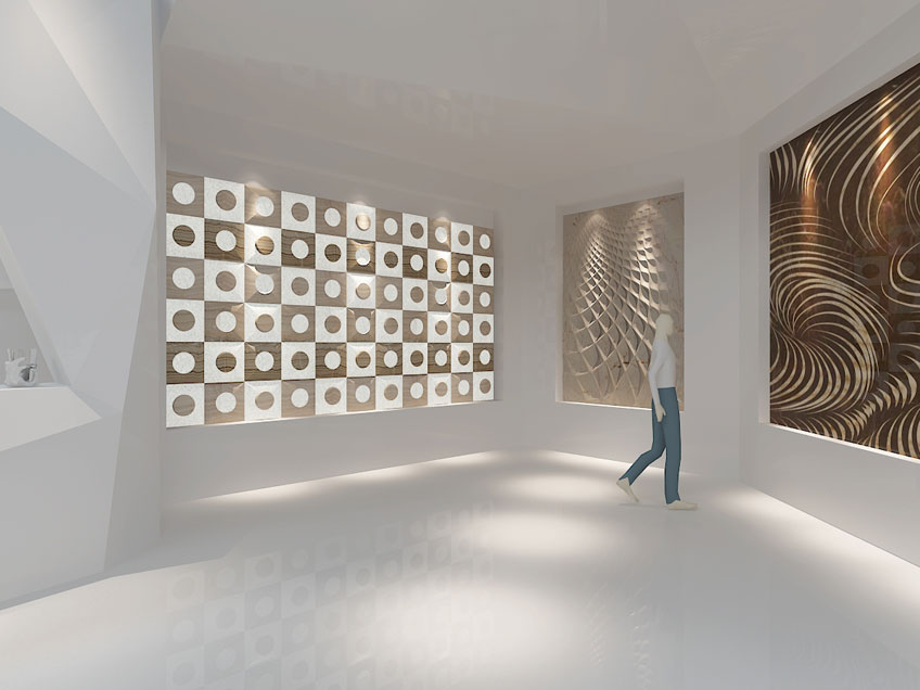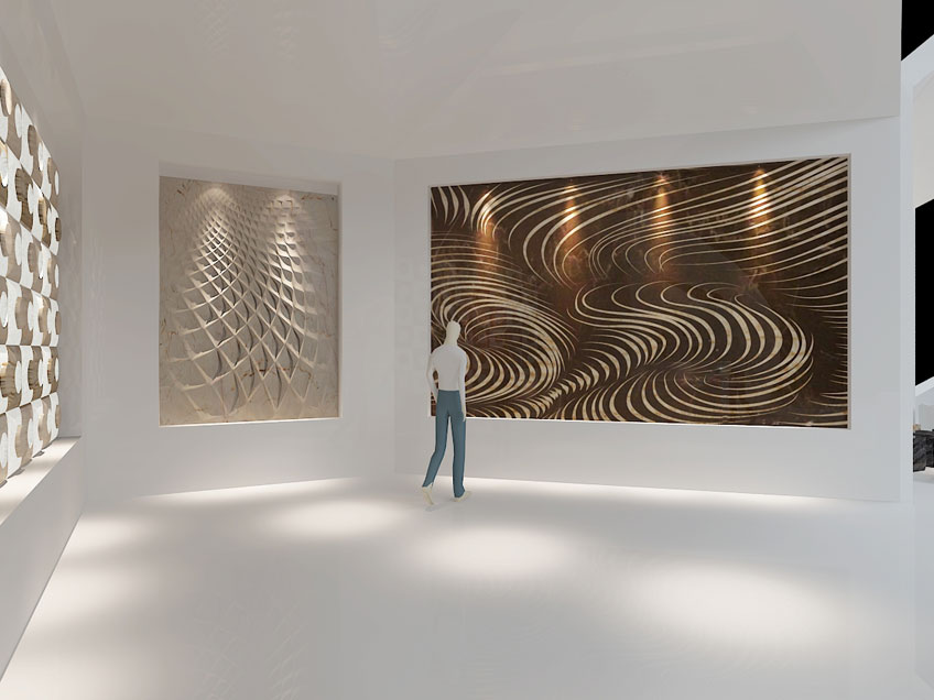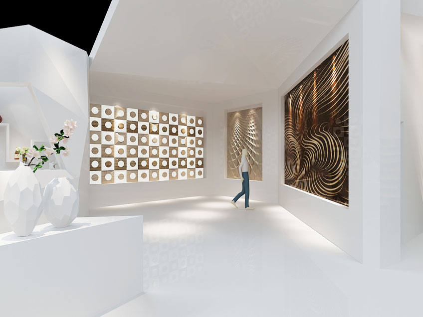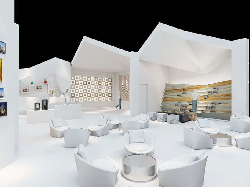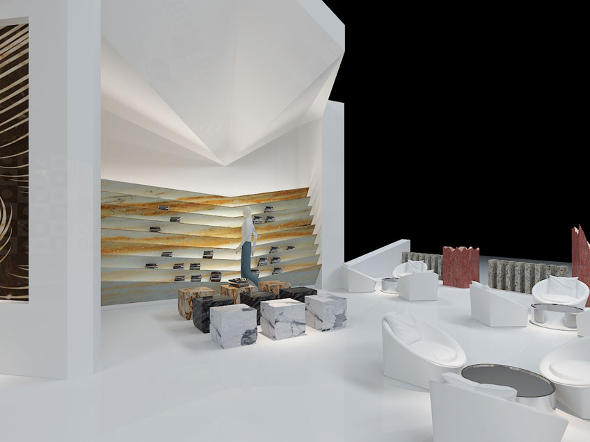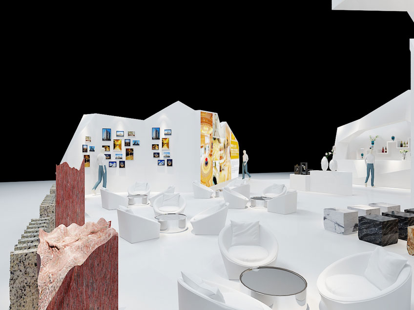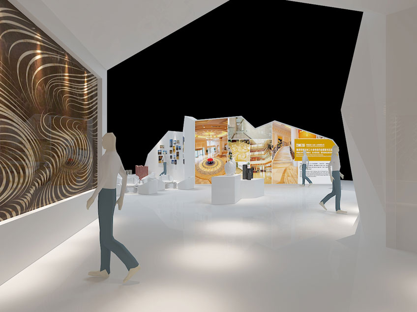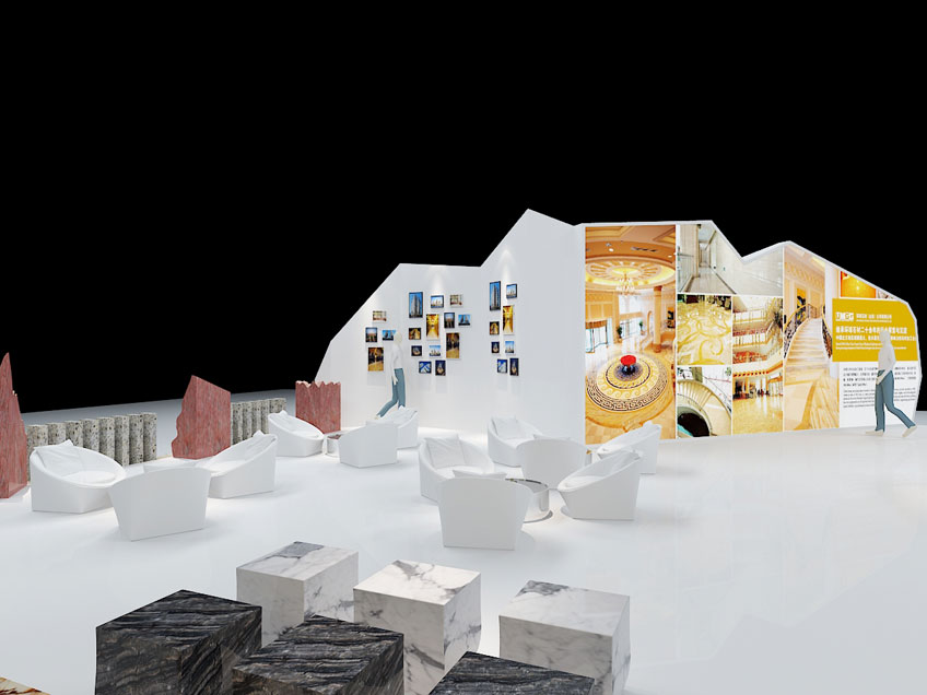 通過設(shè)計(jì),將石材品種、加工工藝、空間應(yīng)用三者完美結(jié)合,展示高品位生活格調(diào)。整合優(yōu)秀、前沿元素,將經(jīng)典工程、軟裝、燈光設(shè)計(jì)注入其中,營造一個(gè)舒適的觀展環(huán)境。通過充滿奇幻的燈光運(yùn)用,及現(xiàn)場(chǎng)演奏、微博等配套活動(dòng),吸引客人眼球,提升展位人氣。
