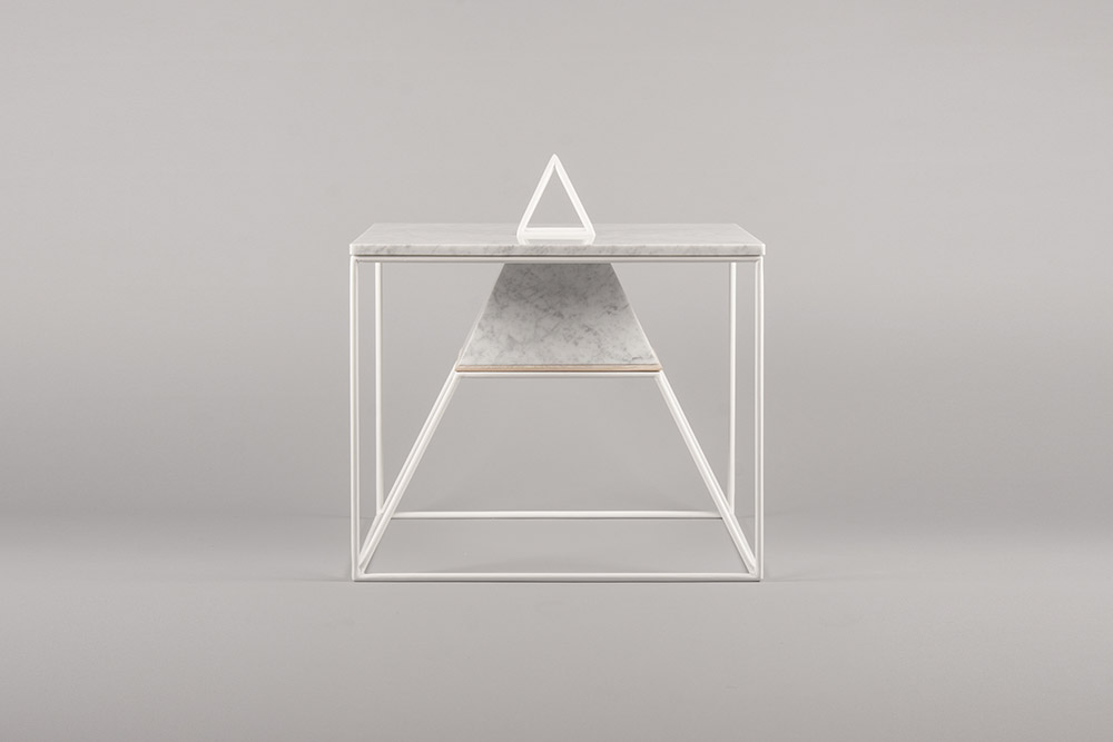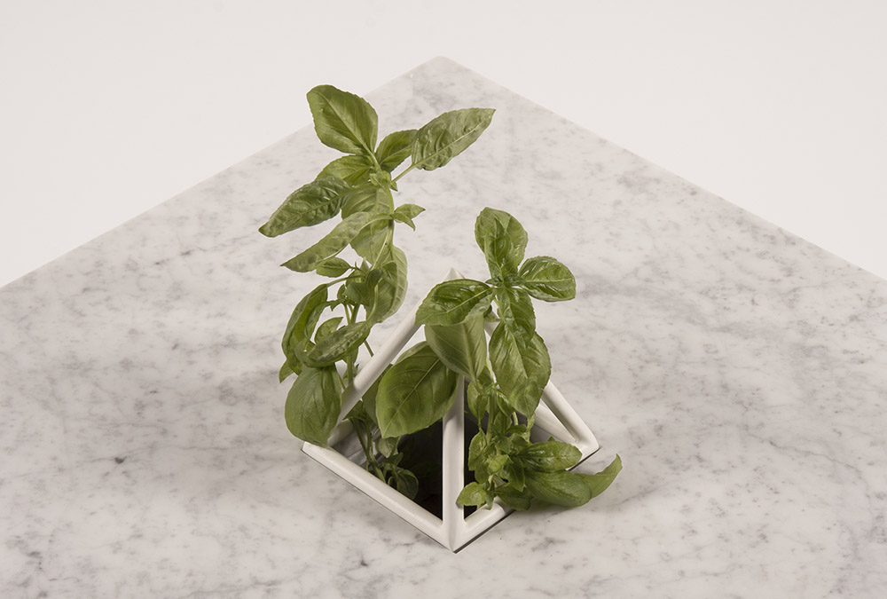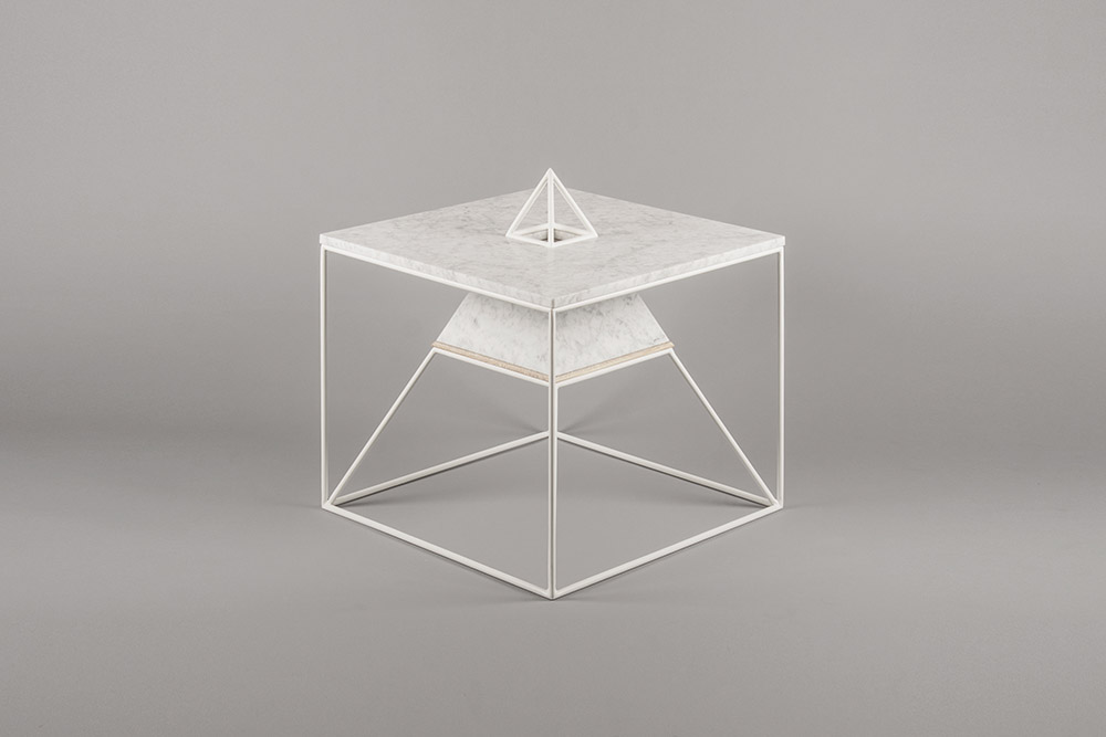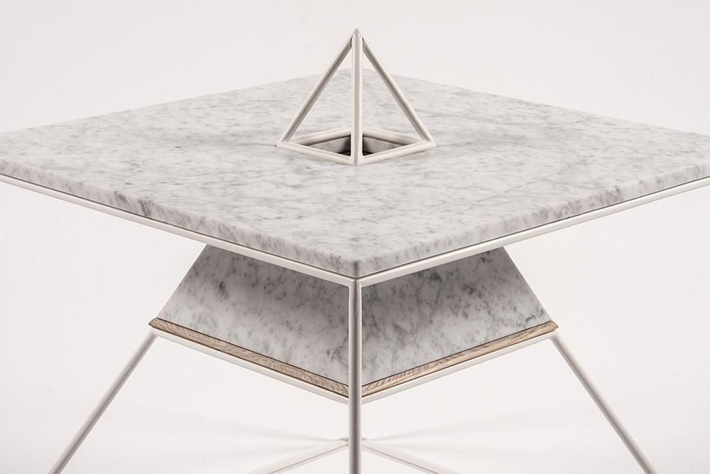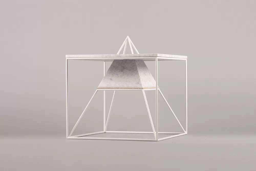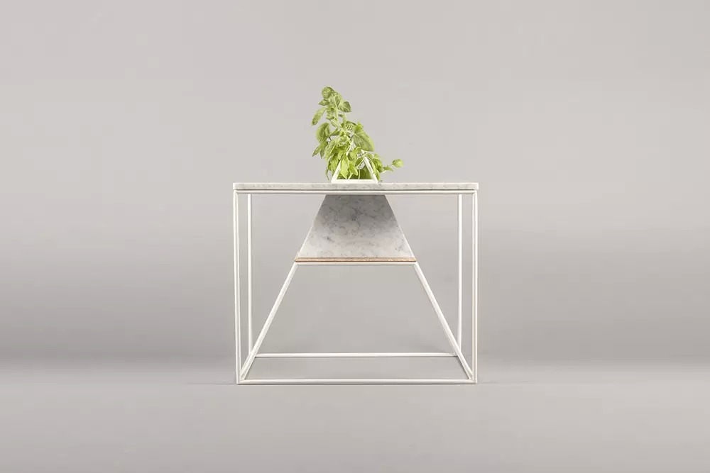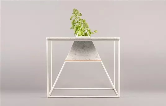 俄羅斯設(shè)計工作室Plan-S23設(shè)計了這款靈感來自外太空試驗植物膠囊的幾何美感石材茶幾Sputnik-5 。茶幾的造型可以簡單理解為一個被大金字塔刺破的方體。方體桌面上露出另一個“”小金字塔“,可以作為植物生長空間。當(dāng)綠色的卷曲自然枝葉與硬朗的茶幾線條交織,形成了美麗的反差對比。組成茶幾的每一個組件都可以被單獨的用作裝飾元素。