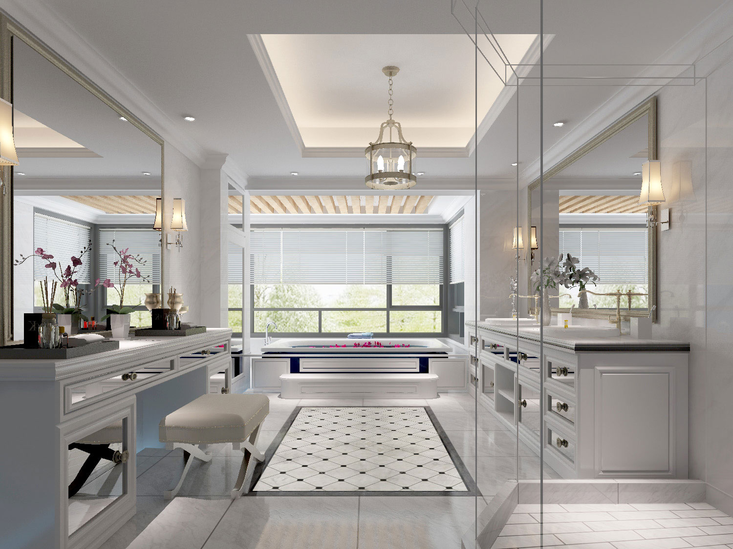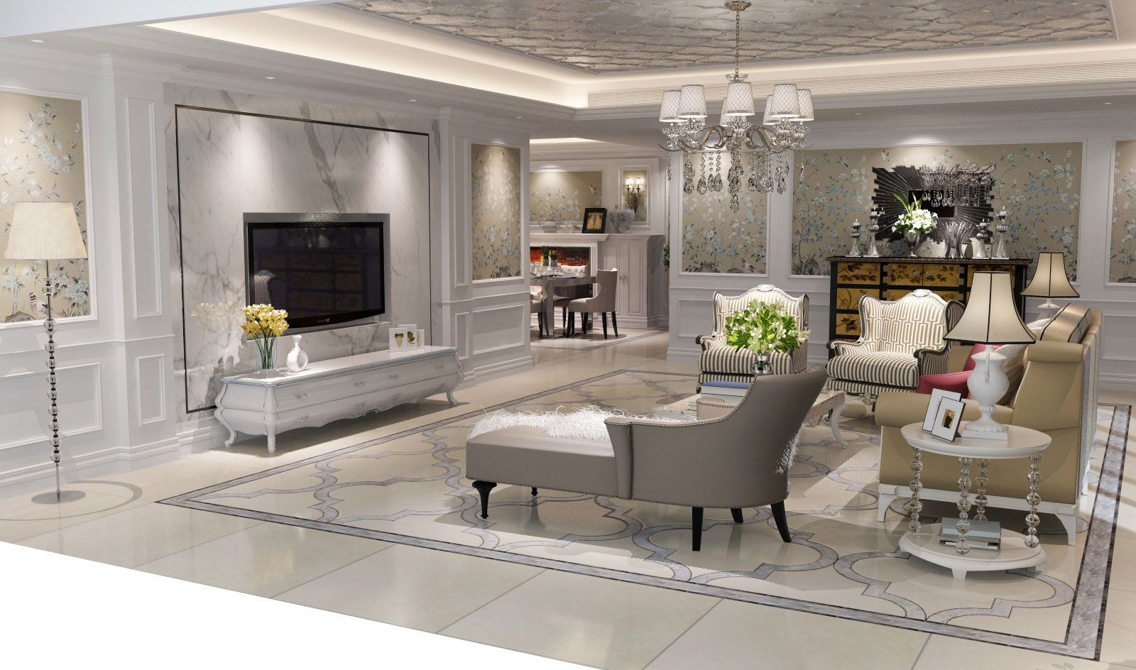 秉持典型的法式風(fēng)格搭配原則,室內(nèi)石材色調(diào)主要以白色和米色為主,對(duì)稱圖案顯得優(yōu)雅矜貴,而在白色的卷草紋窗簾、水晶吊燈、落地?zé)?、瓶插百合花的搭配下,浪漫清新之感撲面而來?/p>