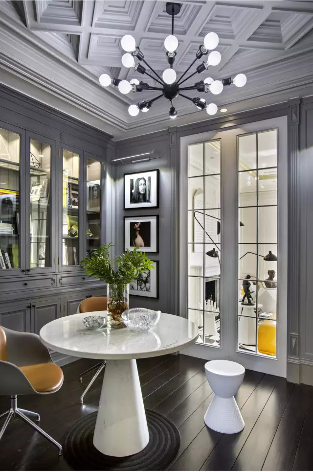 這個(gè)家在設(shè)計(jì)之初就想到這套居所不僅要兼顧居家和設(shè)計(jì)交流的一個(gè)場(chǎng)所,還要略帶偶爾的辦公性質(zhì),因此風(fēng)格不再是室內(nèi)設(shè)計(jì)的唯一語系,混搭復(fù)古和摩登的英倫美家,在空間裝飾和家具選擇上都做足了功夫。