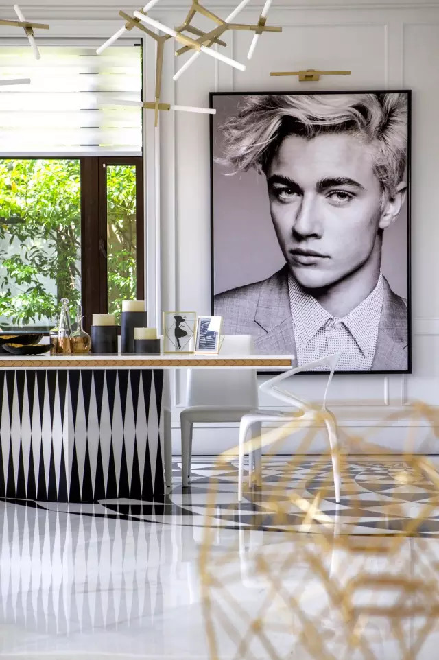 餐廳邊上掛著一幅年僅16歲超級(jí)模特Lucky blue smith的肖像,精致有趣的細(xì)節(jié)不但彌補(bǔ)了視覺的單調(diào),還給這個(gè)空間的添了幾分年輕活躍的氣氛。