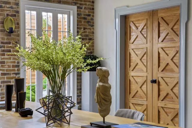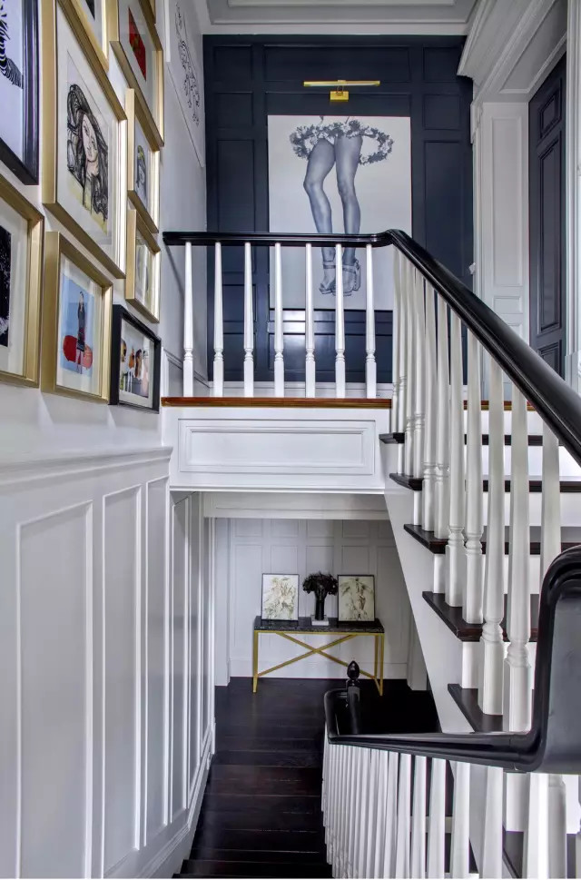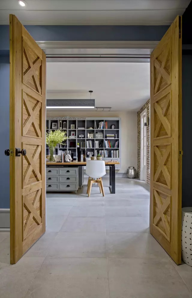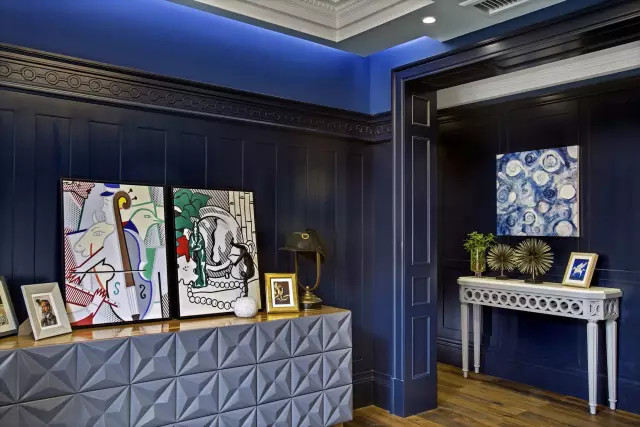 一進(jìn)門你會(huì)被濃濃的藝術(shù)氛圍所吸引,門廳背景墻上男士外型模樣的抽象派飾物就奠定了這個(gè)房間的格調(diào),時(shí)尚感極強(qiáng),搭配護(hù)墻板的灰色很是默契,與之應(yīng)景的是白色的門套與線條,相互穿插誰也搶不了誰的風(fēng)頭,包容又足以眼前一亮。精美的門扉,將原本平淡的墻體無限的拉向遠(yuǎn)方,仿佛既在門里又在門外。