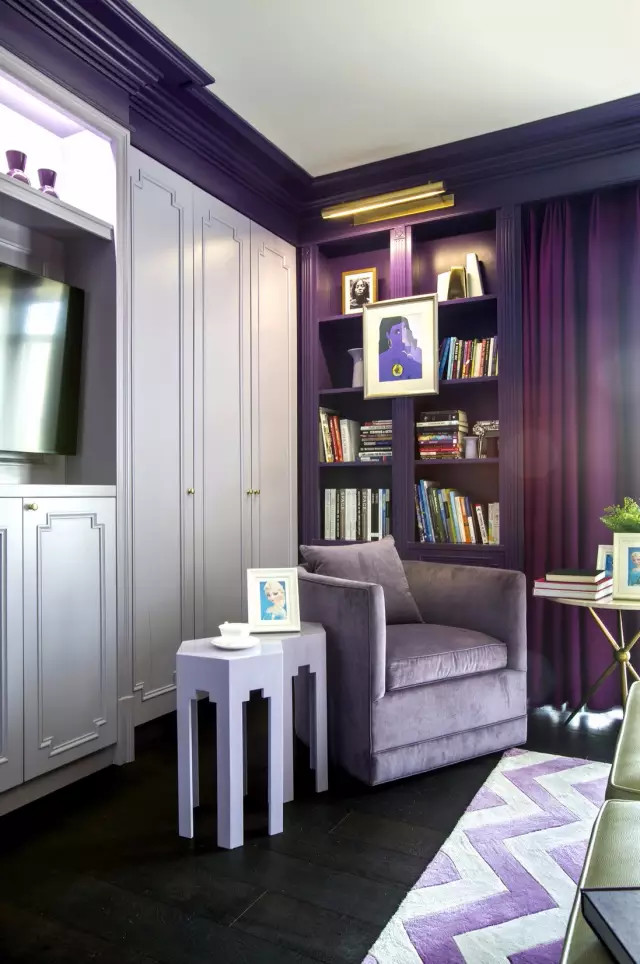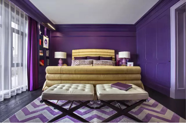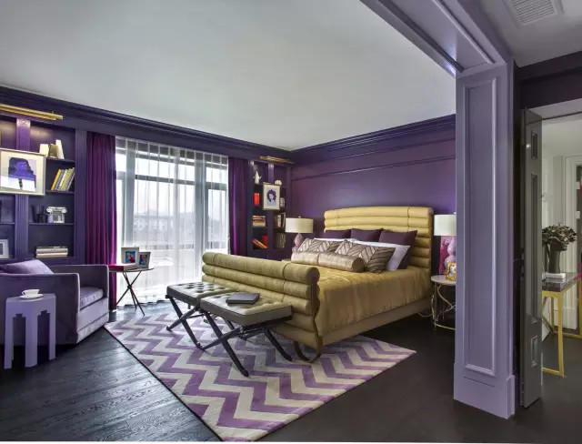 他如同一個(gè)善用色彩煉金的術(shù)士,用心調(diào)和著各種色調(diào),在濃淡不同中,令空間呈現(xiàn)活色生香且有高貴典雅的迷人氣質(zhì)。二樓東邊臥室以紫色作為主色調(diào),搭配著金色的皇帝床,不經(jīng)意的呈現(xiàn)了浪漫的造夢(mèng)空間。
