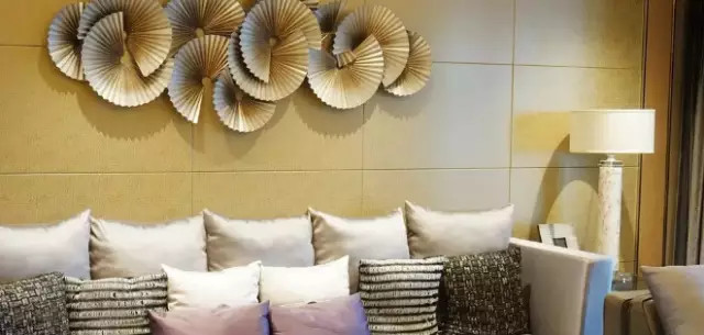 客廳沙發(fā)墻采用數(shù)扇形拼接,讓整體更具藝術氣息。
