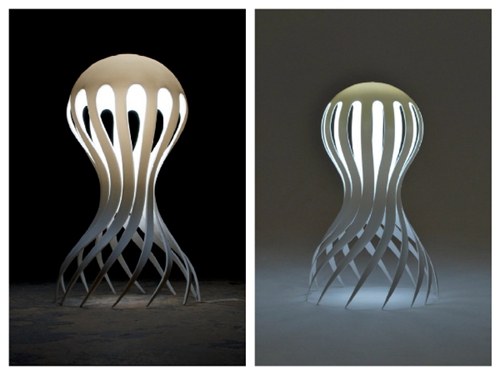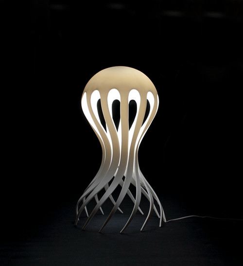 如果把漆黑的夜晚比作一篇海洋的話,那么瑞典哥德堡設(shè)計(jì)師Markus Johansson設(shè)計(jì)的章魚(yú)落地?zé)艟褪呛4采系墓饷魇拐?。這款章魚(yú)臺(tái)燈以「CIRRATA(章魚(yú)的一種)」命名,彎曲的觸角構(gòu)成了落地?zé)舻牡鬃?,白色的燈罩透出柔和的燈光,仿佛漂浮在空中一般?/span>
