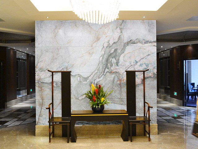 碧桂園,石英巖。碧玉妝成,桂影婆娑。一樹幽綠夾著桂花香氣馨然襲來(lái),沁人心脾。青翠如玉,柔和似錦,醉人的碧與斑駁的樹影交相映襯,宛若草色入簾,苔痕上階。碧桂園背景墻,應(yīng)用于北京西苑飯店會(huì)客廳,清新淡雅的紋路和顏色,裝飾出高貴淡雅的室內(nèi)空間效果,與墻面上書著的:“笙歌回輦處”交相輝映,和諧美好。而碧桂園這種沉穩(wěn)內(nèi)斂,果敢堅(jiān)強(qiáng)的感覺(jué)就像摩羯座給人的感覺(jué)一樣,猶如一潭不見(jiàn)底的深水,理性切謹(jǐn)慎。