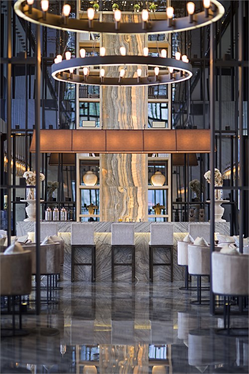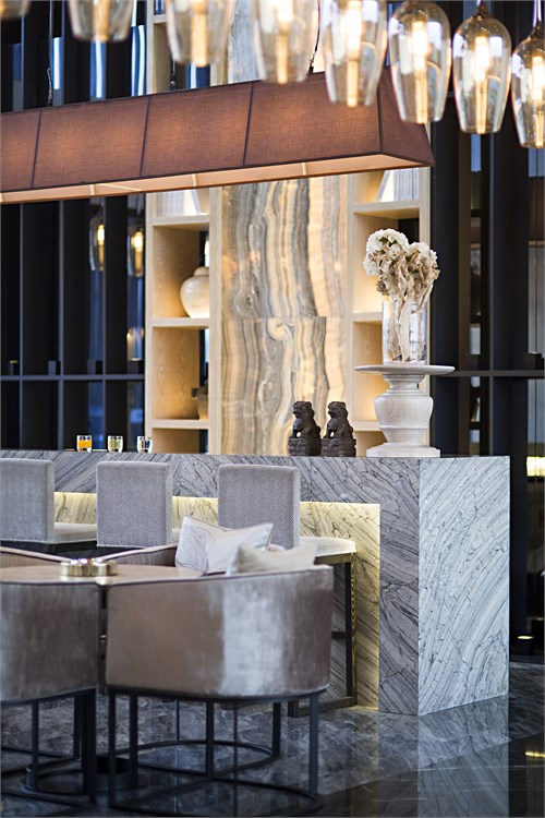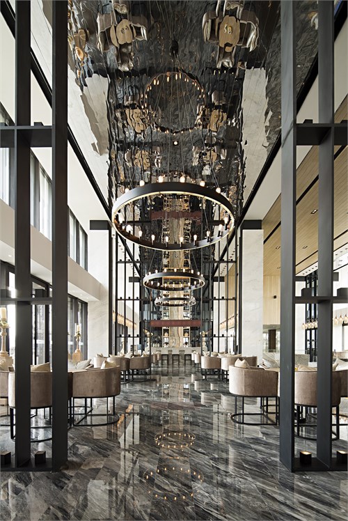 主要材料:太空灰大理石、梵高大理石、清水玉大理石、火山巖大理石、水曲柳洗白、黑鐵氟碳漆、樟木雕刻、鏡面不銹鋼