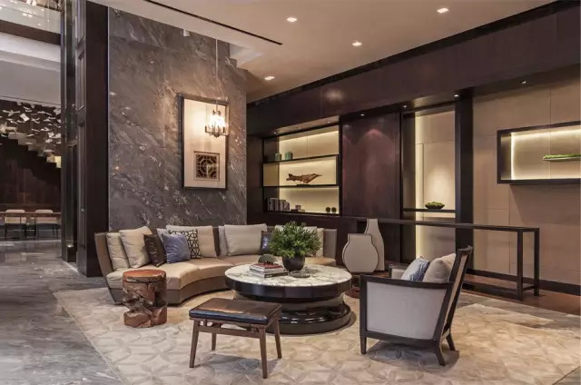 軟裝氛圍,我們沒有運用大量的古典家具,而是在形式和構(gòu)成美感上尋找和中式傳統(tǒng)美有共性的款式。用比較樸實的顏色去貼近整個空間淡淡的格調(diào),不做過分張揚的裝飾,只在某些空間紋理上暗合某些中式的痕跡。