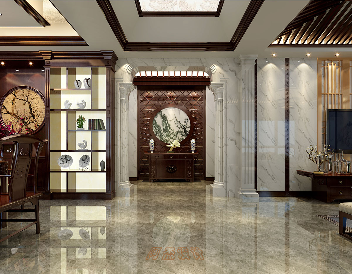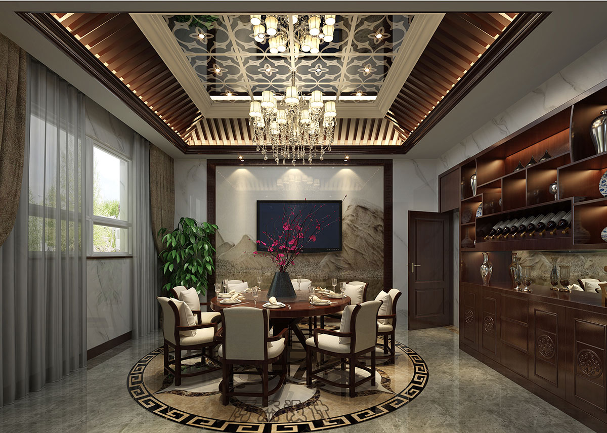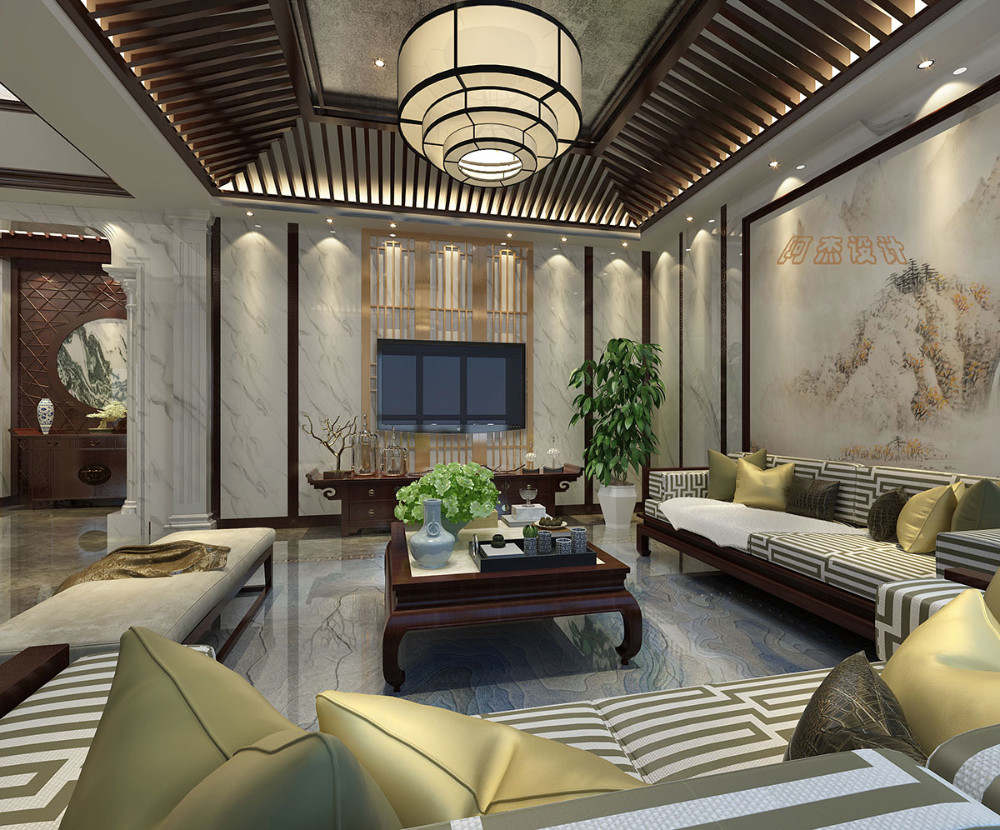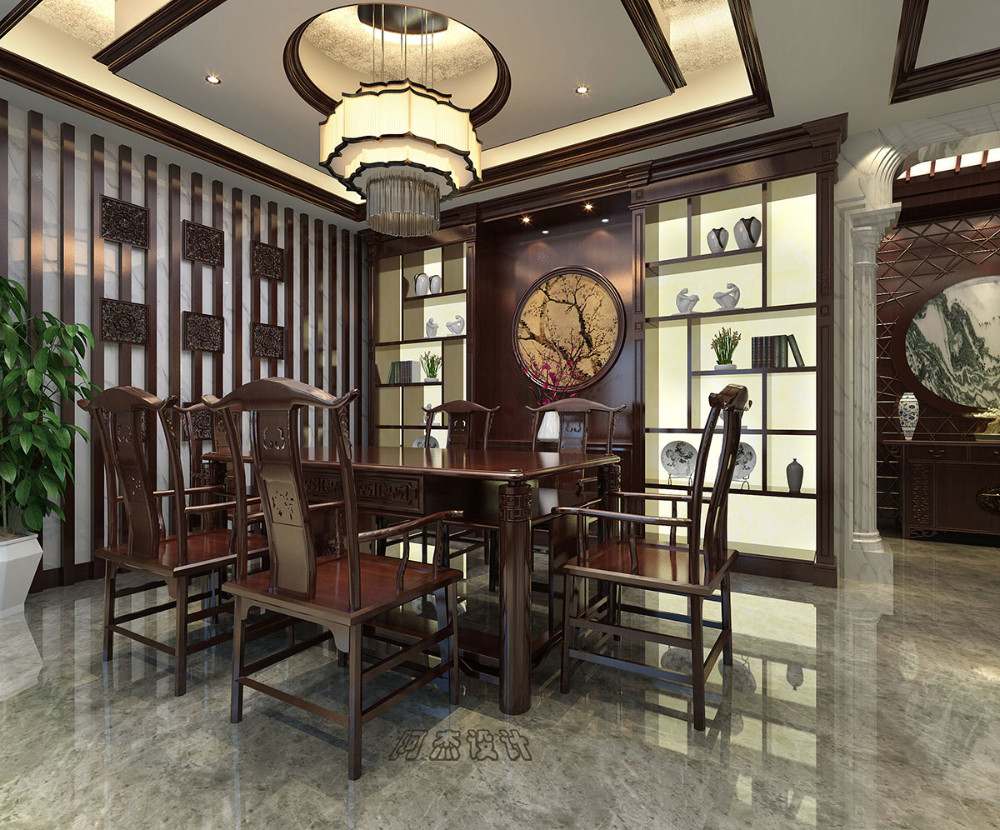 中式風格居家設計非常講究層次感,依據(jù)住宅使用人數(shù)和私密層度的不同,做出分隔的功能性空間。在空間材質運用上,以木與石的對比來體現(xiàn)柔硬并存:磅礴的山水石材,雅致的木梁結構,不僅古韻十足。并且體現(xiàn)出主人的慷慨豪邁,和所不容的心胸。