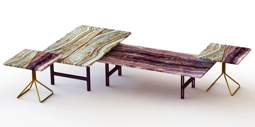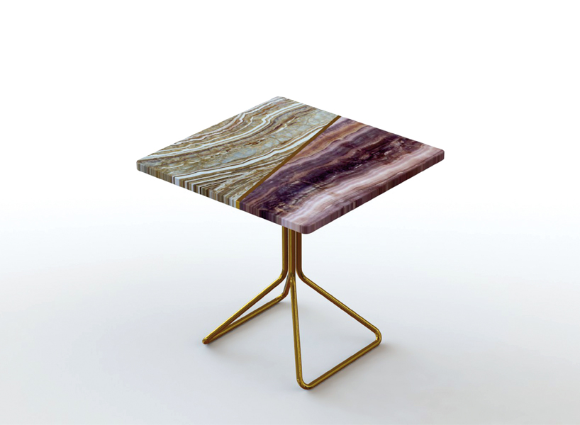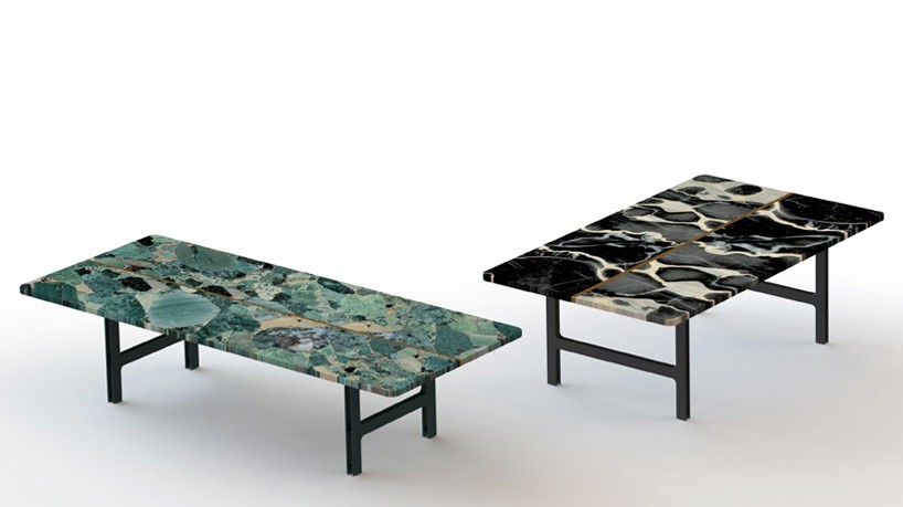 “split table”由黃銅型材連接兩個獨立的河玉大理石而成