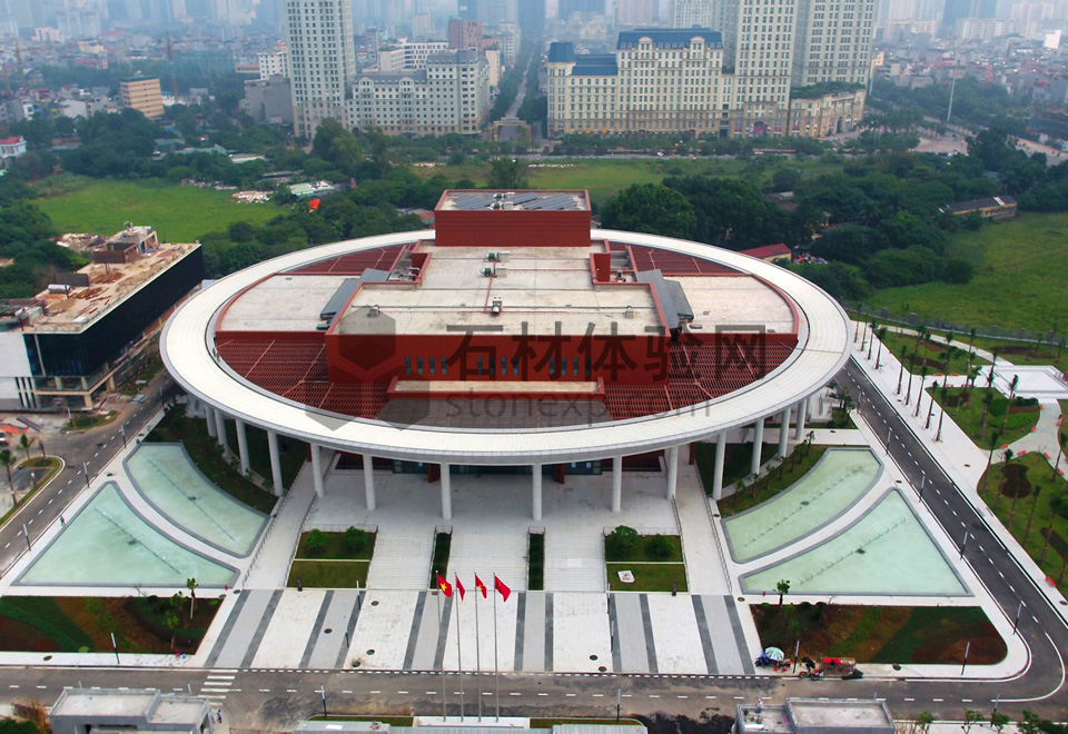 越中友誼宮項目是中國政府無償援助越南政府的援外成套項目,位于越南河內(nèi)市黎光道188號,總占地面積3.3公頃,建筑面積13966平米。主體中部A區(qū)為劇院部分,有主會堂大廳、展廳、舞臺及可容納1500人觀演的觀眾大廳;兩側(cè)B、C區(qū)分別配有公務(wù)接待和文化交流區(qū)域,包括多功能廳、會議室、休息及辦公、貴賓室、茶室、中醫(yī)理療室和圖書室等。項目設(shè)計外圓內(nèi)方,圓環(huán)象征和諧、團結(jié)與圓滿,體現(xiàn)了中越兩國人民對團結(jié)的向往,建成后將成為中越文化交流、大型文藝演出和會議等主要活動場所,并作為重要慶典、外事禮儀、文化交流平臺的綜合性建筑。 該項目共兩層,我司承接了內(nèi)裝所有石材部分。主要石材用料為象牙米黃、 莎安娜米黃、 淺啡網(wǎng)。 |