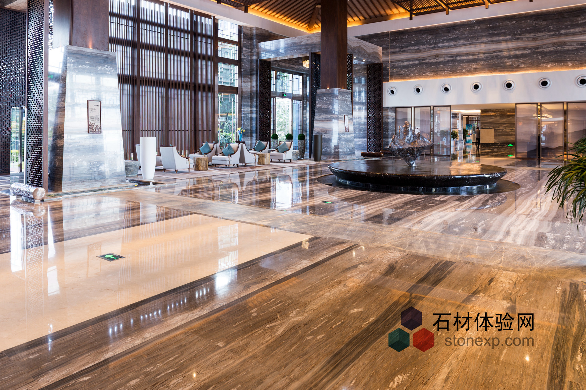 大理國際大酒店為世界首座白族超五星級酒店,坐落于大理州首府下關(guān)經(jīng)濟(jì)開發(fā)區(qū)洱海之濱,依山傍水,俯可瞰270平方公里洱海的壯闊全景,遠(yuǎn)可眺蒼山白雪銀頂?shù)男沱愋燮妫c洱海公園、龍山公園相擁,是一方頤養(yǎng)心靈的理想之所。酒店內(nèi)一步一景,或民族,或現(xiàn)代,或時(shí)尚,或雅致,美景流動,漫步其間,愉悅隨心彌散,是以水岸園林生活為主題的奢華商務(wù)度假酒店。 早在2010年“中國國際空間環(huán)境藝術(shù)設(shè)計(jì)大賽”中,其憑借獨(dú)特的空間設(shè)計(jì)就獲得亞太“筑巢獎(jiǎng)”金獎(jiǎng)。該項(xiàng)目被列為云南省旅游業(yè)第一個(gè)重點(diǎn)項(xiàng)目。酒店建筑體現(xiàn)白族建筑特色,整個(gè)布局宛如玉龍,與龍脈上“二龍戲珠”概念相契合,體現(xiàn)龍脈的精神所在! 石材總體色調(diào):灰色(用料藍(lán)金沙、淺云灰居多) 石材品種:藍(lán)金砂、雅典娜灰、黑金花、雪花白、雅士白、比薩灰、世紀(jì)米黃、奧巴馬木紋、淺云灰 |