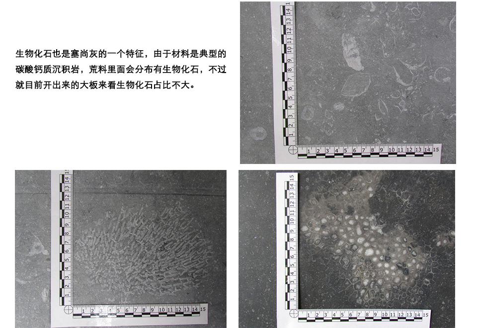 特征:底色為深灰色系,會(huì)有淺灰到深灰的變化,版面會(huì)帶有少量海洋生物化石。