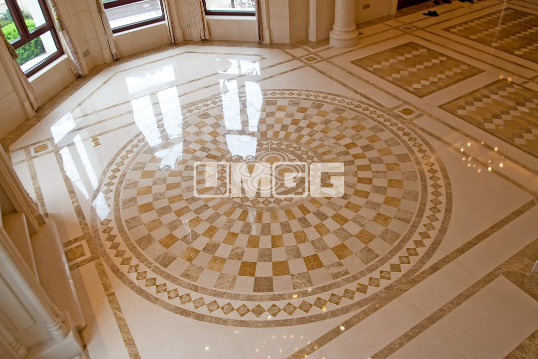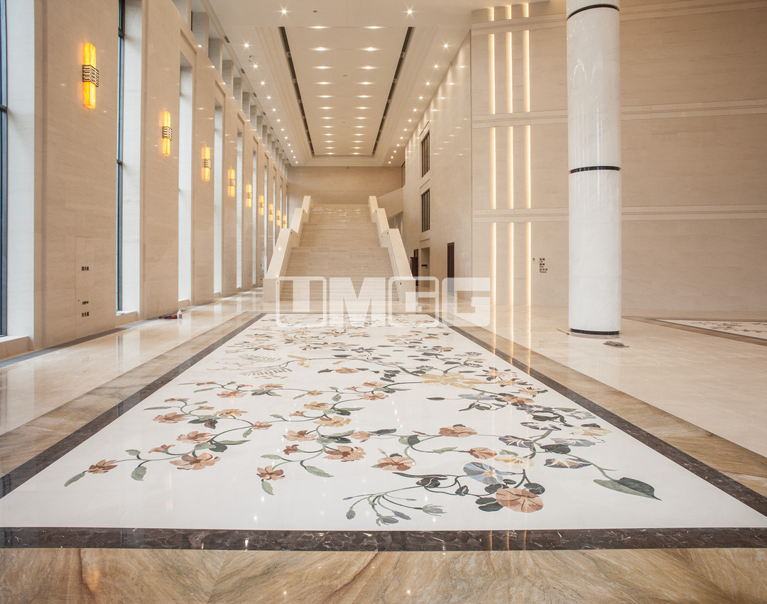 大理石拼花不僅可以瞬間提升建筑檔次,凸顯品位,而且還能提升整體視覺效果,哪怕是最容易被忽視的走廊或電梯廳,精致的大理石拼花都能將不同的空間裝點成一道道靚麗的風景。