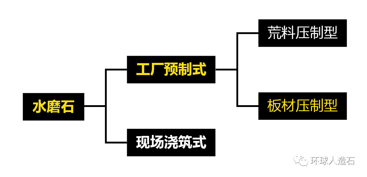 工廠預制型水磨石也分為方料壓制和板材壓制,兩者也各有其特點: