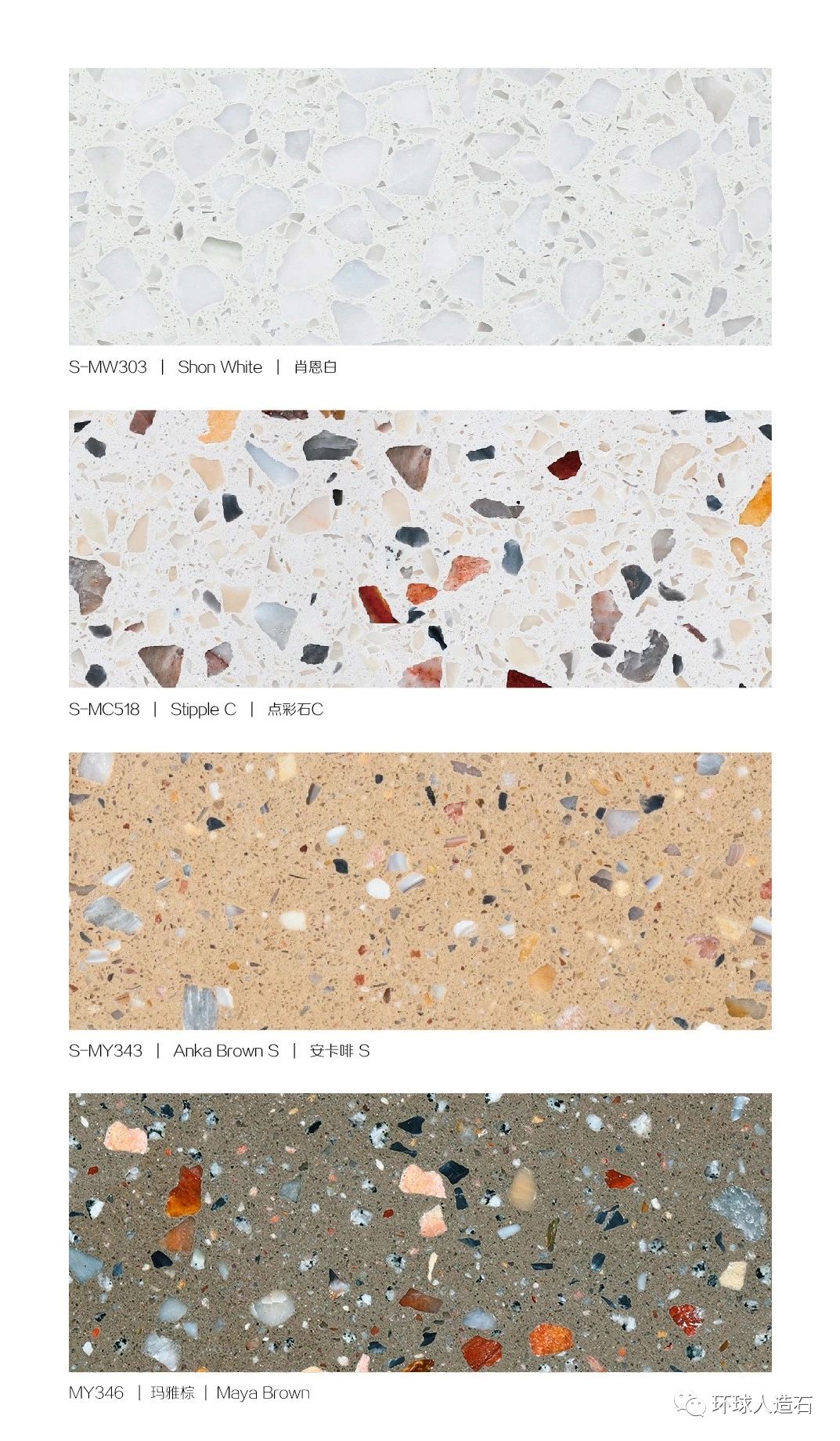 不過由于模具限制,板材型難以做到超大顆粒的花色,且厚度為固定厚度(一般多為12~40mm)。