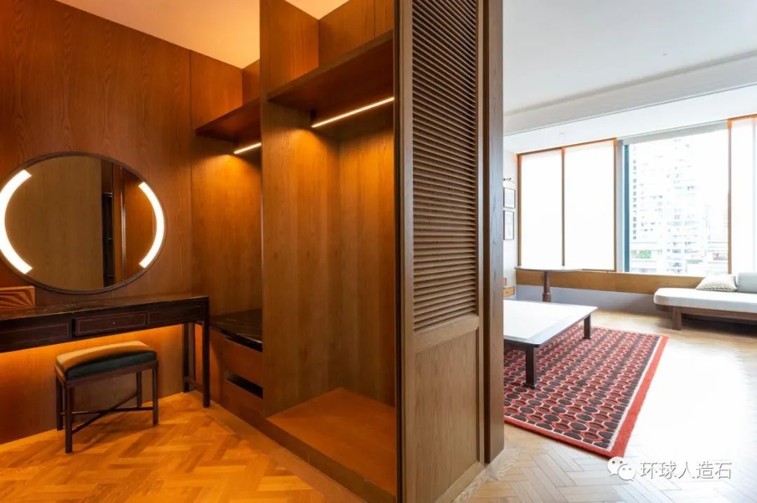 廈門安達仕酒店擁有304間客房,面積從50平方米至210平方米不等,每一間客房都將南洋風格與現(xiàn)代奢華舒適結(jié)合得淋漓盡致。挑高約3.2米的客房內(nèi),從藤編椅靠到編織墻面和木質(zhì)百葉,極具特色的復古梳妝臺,到南洋風格的天然紋路和物件,在時髦輕松的基調(diào)上均還原了華僑旅居南洋時的生活場景。