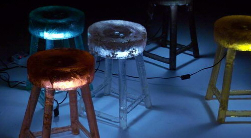 福柜 (小儲(chǔ)物柜)用老家具翻模采用透明樹(shù)脂材料置換老家具材料,刻意的粗糙似乎在嘲諷脆弱的琉璃。
