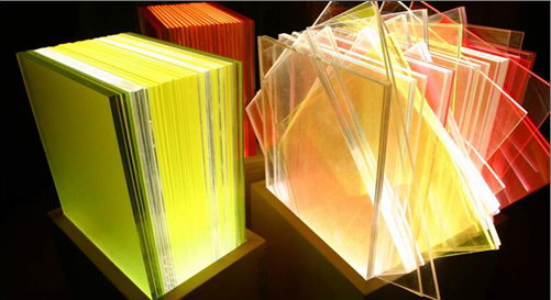 光的側(cè)面(臺(tái)燈)不同色彩的有機(jī)玻璃疊放,透過(guò)其側(cè)面折射的光線制造光柵效果。有機(jī)玻璃的次序可以任意組合,滿足不同感官要求。