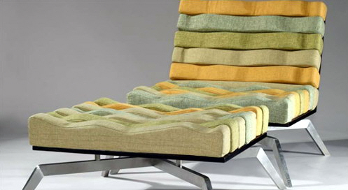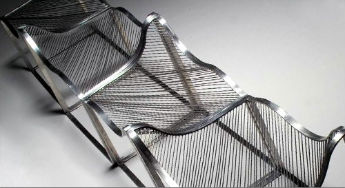 毯(凳)曲面構(gòu)成,制造漂浮的視覺(jué)印象,琴弦般的鋼絲增加韻律感。有幾種組合方式。
