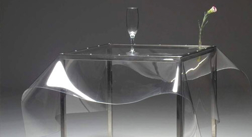 皇帝的新茶幾徹底通透的材料既是臺(tái)面也是臺(tái)布,割個(gè)十字口便可以方便地放入試管插花,配合冷硬的不銹鋼框架,制造一個(gè)強(qiáng)烈虛實(shí)對(duì)比。