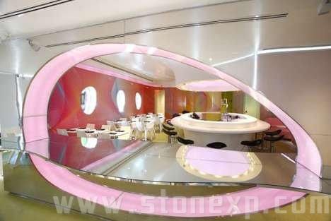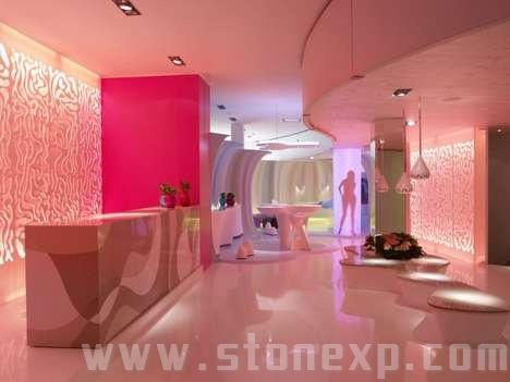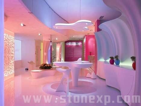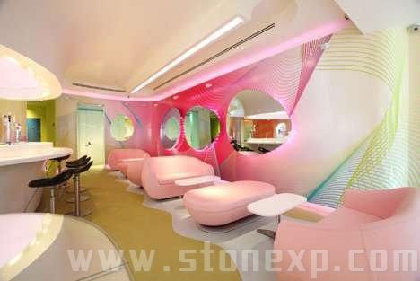 夢(mèng)幻的射燈照在現(xiàn)代感十足的店面中,讓人仿佛進(jìn)入夢(mèng)幻王國(guó),這就是著名設(shè)計(jì)師Karim Rashid為某精品店設(shè)計(jì)店面。