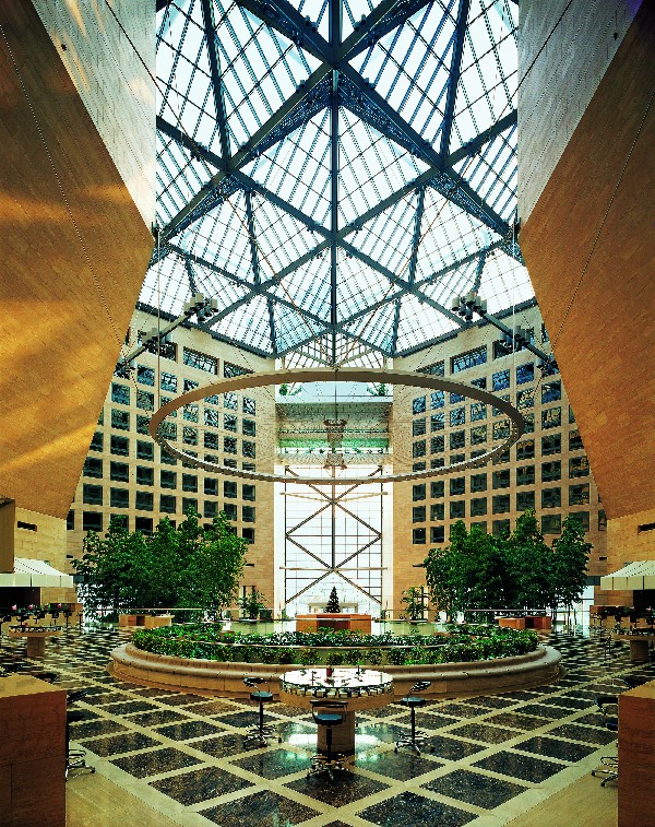 該項目是我院與華裔國際建筑大師貝聿銘先生合作完成的建筑精品??偨ㄖ娣e為174896平方米,地上15層,地下4層,建筑高度57.40米。作為銀行辦公建筑,無論建筑細節(jié)的處理、結(jié)構(gòu)的復雜性,還是建筑樓宇智能化程度,本工程已達到國際最高級別的建筑配置。