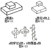 ④a物穿過b物,b物覆蓋a物,也有b物不完全覆蓋a物(如圖4—13)。這種關系正如人身上的骨肉關系。肌肉覆蓋骨頭,而骨頭又穿過肌肉。
