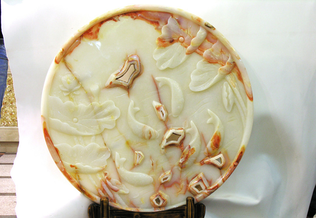 所謂浮雕是雕塑與繪畫(huà)結(jié)合的產(chǎn)物,用壓縮的辦法來(lái)處理對(duì)象,靠透視等因素來(lái)表現(xiàn)三維空間,并只供一面或兩面觀看。浮雕一般是附屬在另一平面上的,因此在建筑上使用更多,用具器物上也經(jīng)??梢钥吹健S捎谄鋲嚎s的特性,所占空間較小,所以適用于多種環(huán)境的裝飾。近年來(lái),它在城市美化環(huán)境中占了越來(lái)越重要的地位。浮雕在內(nèi)容、形式和材質(zhì)上與圓雕一樣豐富多彩。