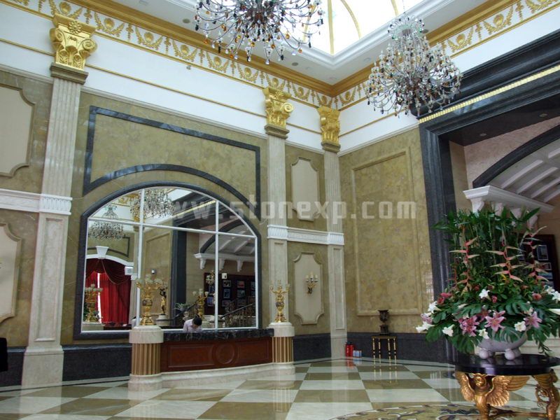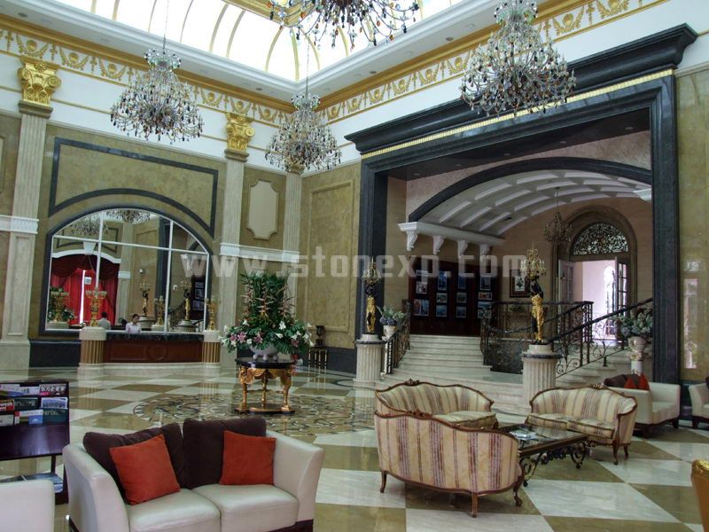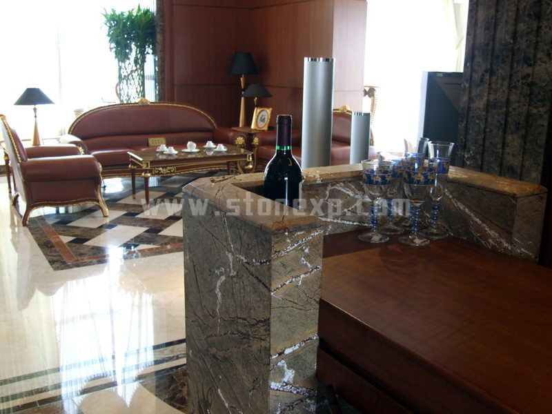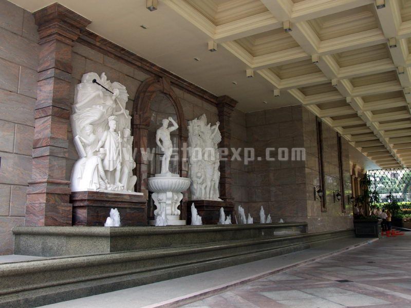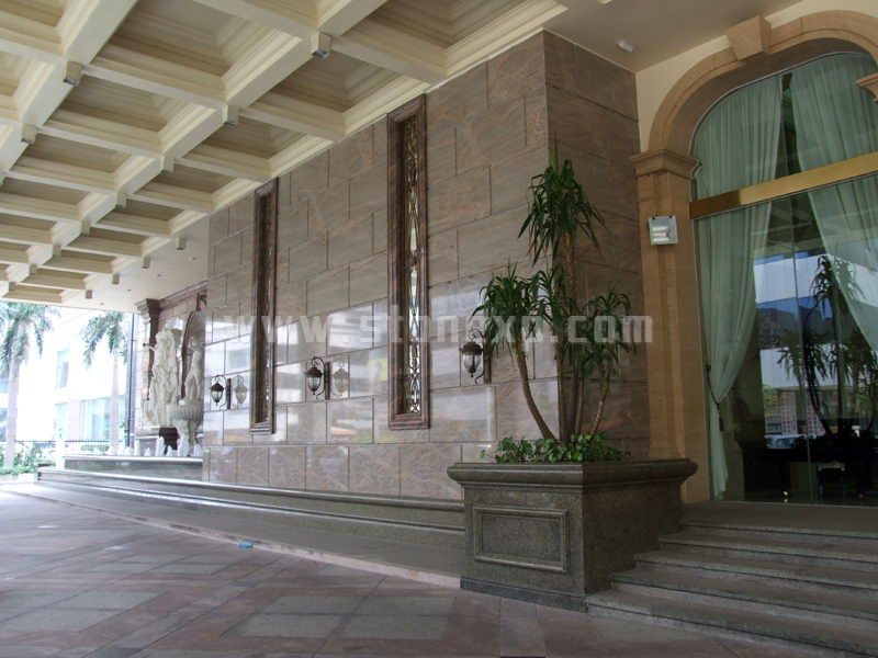 廣州凱旋會(huì)花園,是一座花園式住宅區(qū),內(nèi)外裝修都用了大量的天然石材,石材應(yīng)用的種類也非常繁多,如石材的吧臺(tái),石材拼花,維妙維肖的石材雕像,氣勢(shì)磅礴的石材圓柱等等。