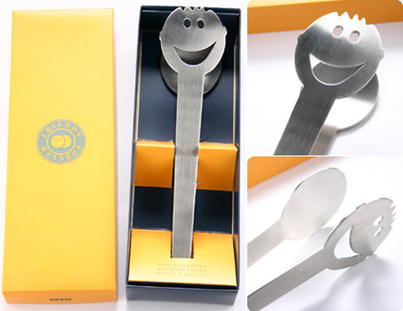 可愛的微笑餐具。本來是冰冷的金屬,但有微笑一下子就覺得溫馨多了。擁有這樣一套餐具,一定會給平淡的生活增添幾分樂趣。