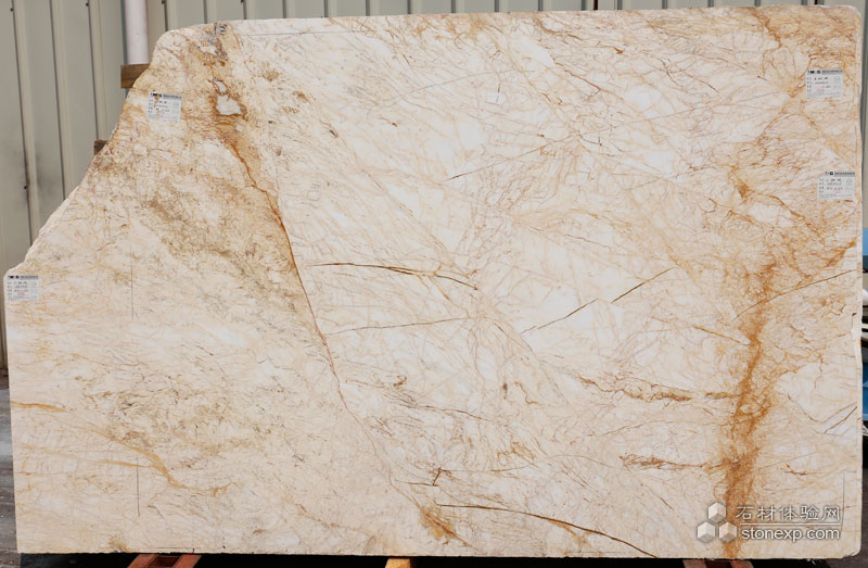 金蜘蛛 大理石產(chǎn)地:希臘材質(zhì)特征:金蜘蛛這款大理石美麗大方,但因紋路清晰,不適合做大規(guī)格產(chǎn)品。品種介紹:金蜘蛛分三種風(fēng)格,1、白底紅根;2、黃底紅根;3、黃底黃根。網(wǎng)紋經(jīng)常變化,有密集網(wǎng)和稀疏網(wǎng)之分,50%料有灰紋存在,棕色色線及材質(zhì)松散為其主要缺陷。此料出材率很低,膠補困難,易崩邊崩角。典型工程:皇宮大酒店、美國拉斯維加斯、澳門永利酒店物理屬性:密度(g/cm)2.60,吸水率(%)<1,壓縮強度(MPa)110.00,彎曲強度(Mpa)12.5,肖氏強度(HSD)15.00