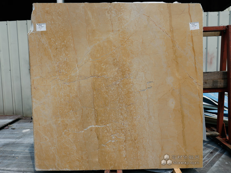 特性:1、在土耳其有兩個礦口,顏色深的稱為帝黃金,顏色淺的叫做寶金米黃。2、材質(zhì)比較細膩,光度好,比較容易膠補。